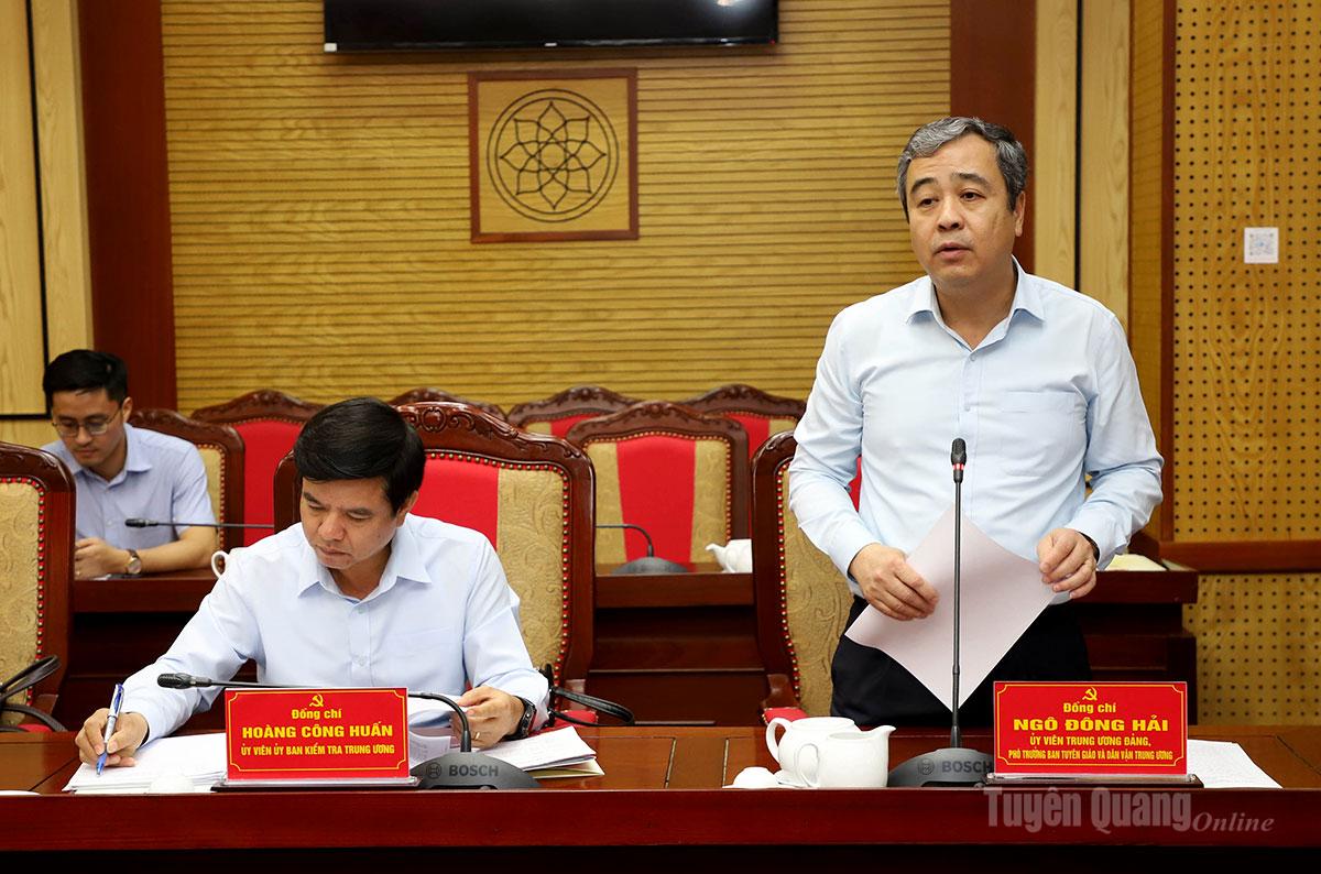 Đồng chí Ngô Đông Hải, Ủy viên Trung ương Đảng, Phó Trưởng Ban Tuyên giáo và Dân vận Trung ương thông báo kết quả giám sát đợt 1 đối với Ban Thường vụ Tỉnh ủy Tuyên Quang.