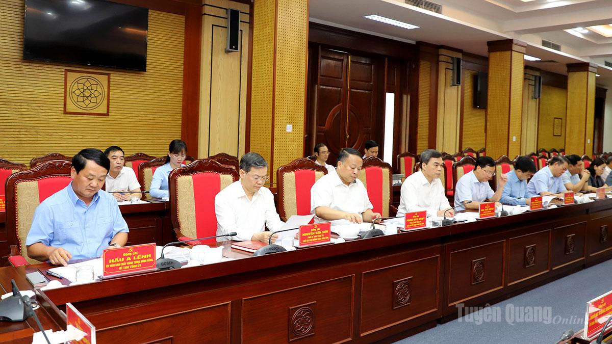 Tham dự buổi làm việc về phía tỉnh Tuyên Quang có các đồng chí: Hầu A Lềnh, Ủy viên BCH Trung ương Đảng, Bí thư Tỉnh ủy; Nguyễn Văn Sơn, Phó Bí thư Tỉnh ủy, Chủ tịch HĐND tỉnh; Phan Huy Ngọc, Phó Bí thư Tỉnh ủy, Chủ tịch UBND tỉnh; Ma Thế Hồng, Phó Bí thư Tỉnh ủy, Chủ tịch Ủy ban MTTQ tỉnh; các đồng chí Ủy viên Ban Thường vụ Tỉnh ủy; lãnh đạo các sở, ngành và một số xã, phường.