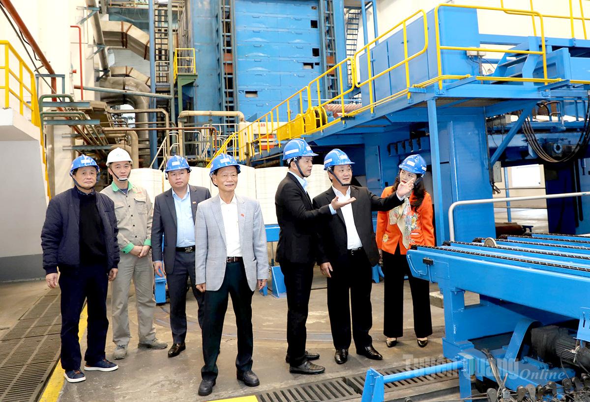 Bí thư Tỉnh ủy Hầu A Lềnh thăm dây truyền sản xuất của Công ty Cổ phần Giấy An Hòa.
