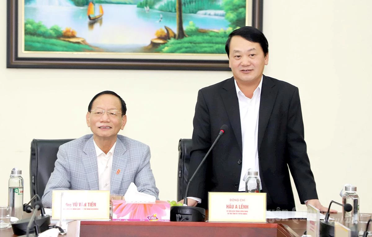 Bí thư Tỉnh ủy Hầu A Lềnh phát biểu tại buổi làm việc với Công ty Cổ phần Giấy An Hòa.