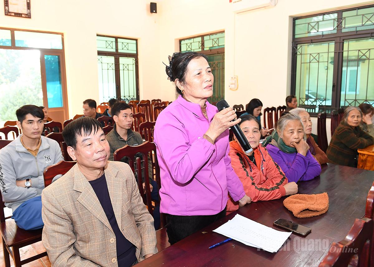 Cử tri xã Xuân Vân đã nêu nhiều ý kiến kiến nghị, tập trung vào các nội dung như: Đẩy nhanh tiến độ thi công các công trình xây dựng, cải tạo các tuyến đường, đường điện xuống cấp; giám sát, xử lý xe chở hàng có dấu hiệu quá tải chạy qua địa bàn; đẩy nhanh tiến độ cấp giấy chứng nhận quyền sử dụng đất trên địa bàn; hỗ trợ người dân có vật nuôi bị tiêu hủy do mắc dịch bệnh; giải quyết chế độ chính sách, hỗ trợ làm nhà ở đối với hộ nghèo…