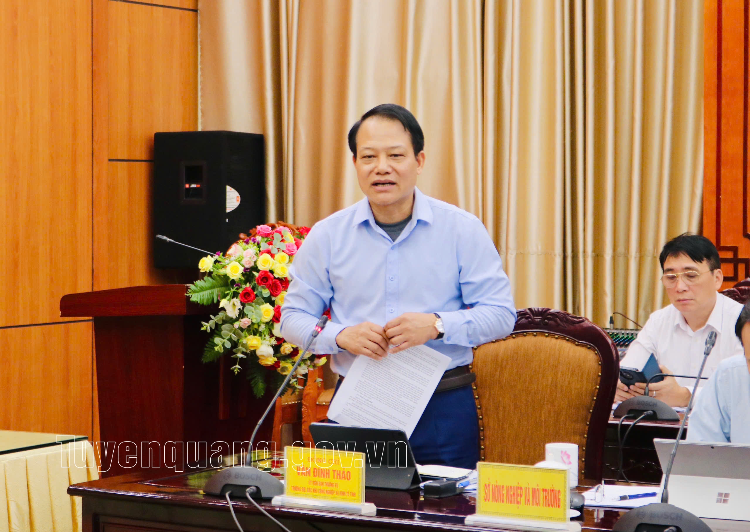 Đồng chí Vân Đình Thảo, Ủy viên BTV Tỉnh ủy, Trưởng Ban Quản lý các khu công nghiệp và khu kinh tế tỉnh phát biểu tại buổi làm việc.