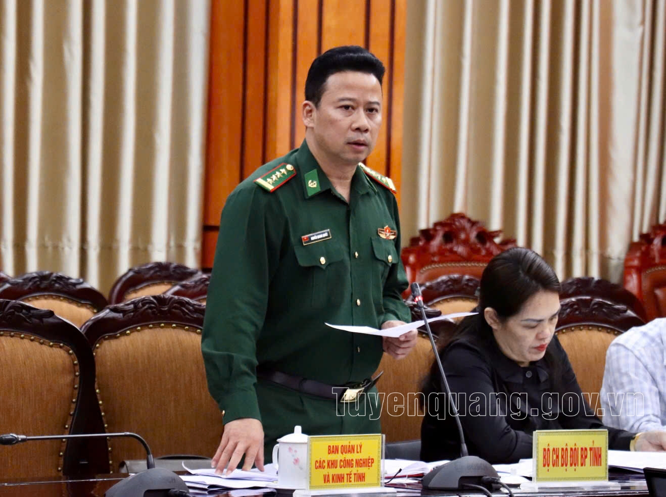 Lãnh đạo Bộ Chỉ huy bộ đội biên phòng tỉnh, Sở Tài chính, Sở Xây dựng phát biểu tại buổi làm việc.