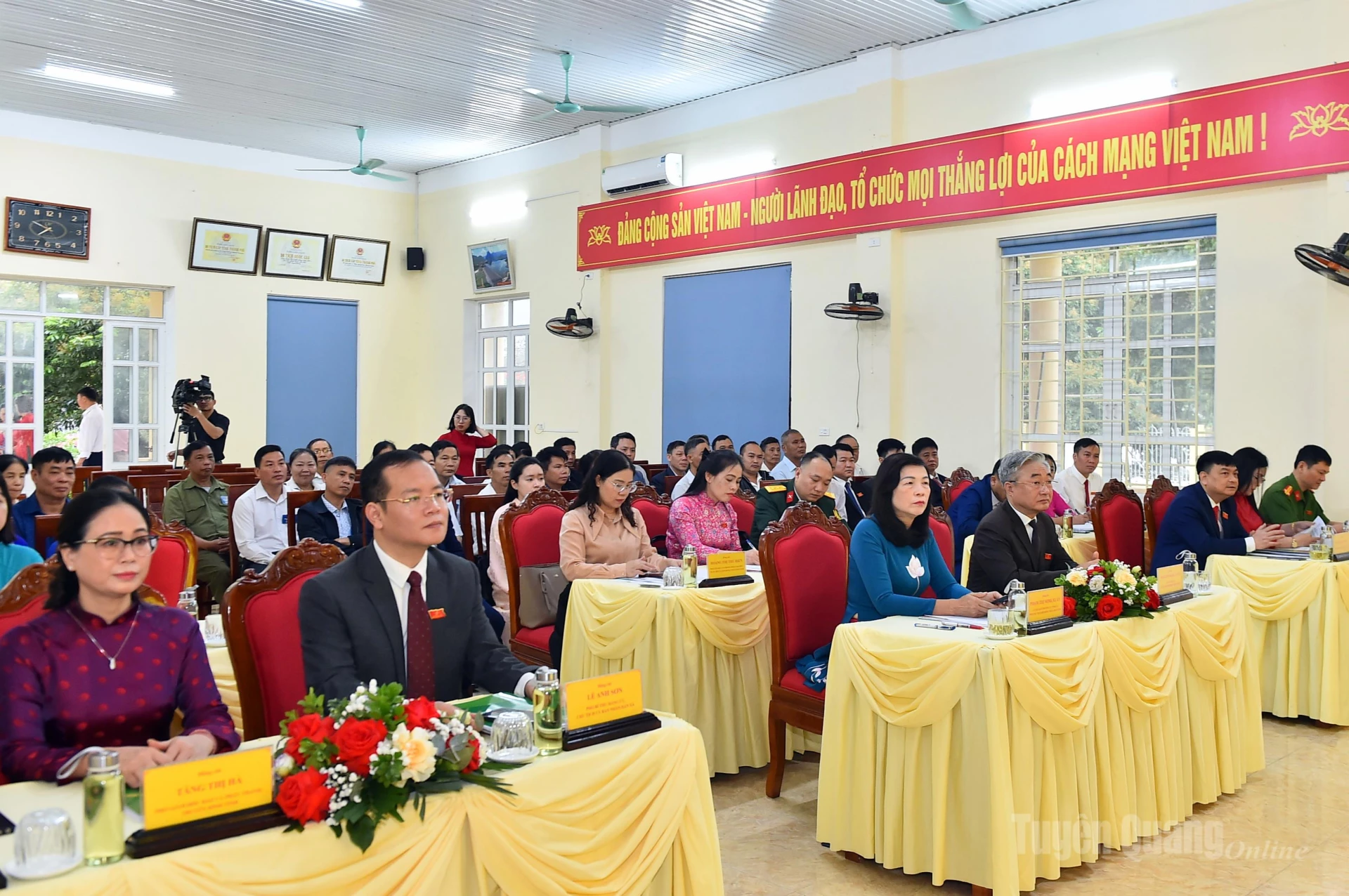 Đồng chí Phó Chủ tịch HĐND tỉnh Phạm Thị Minh Xuân cùng các đại biểu dự kỳ họp thứ nhất HĐND xã Thái Bình.