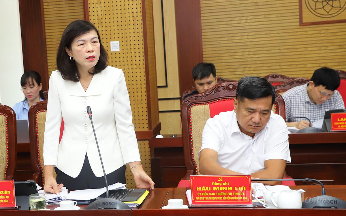 Phó Chủ tịch HĐND tỉnh Phạm Thị Minh Xuân thảo luận tại hội nghị.