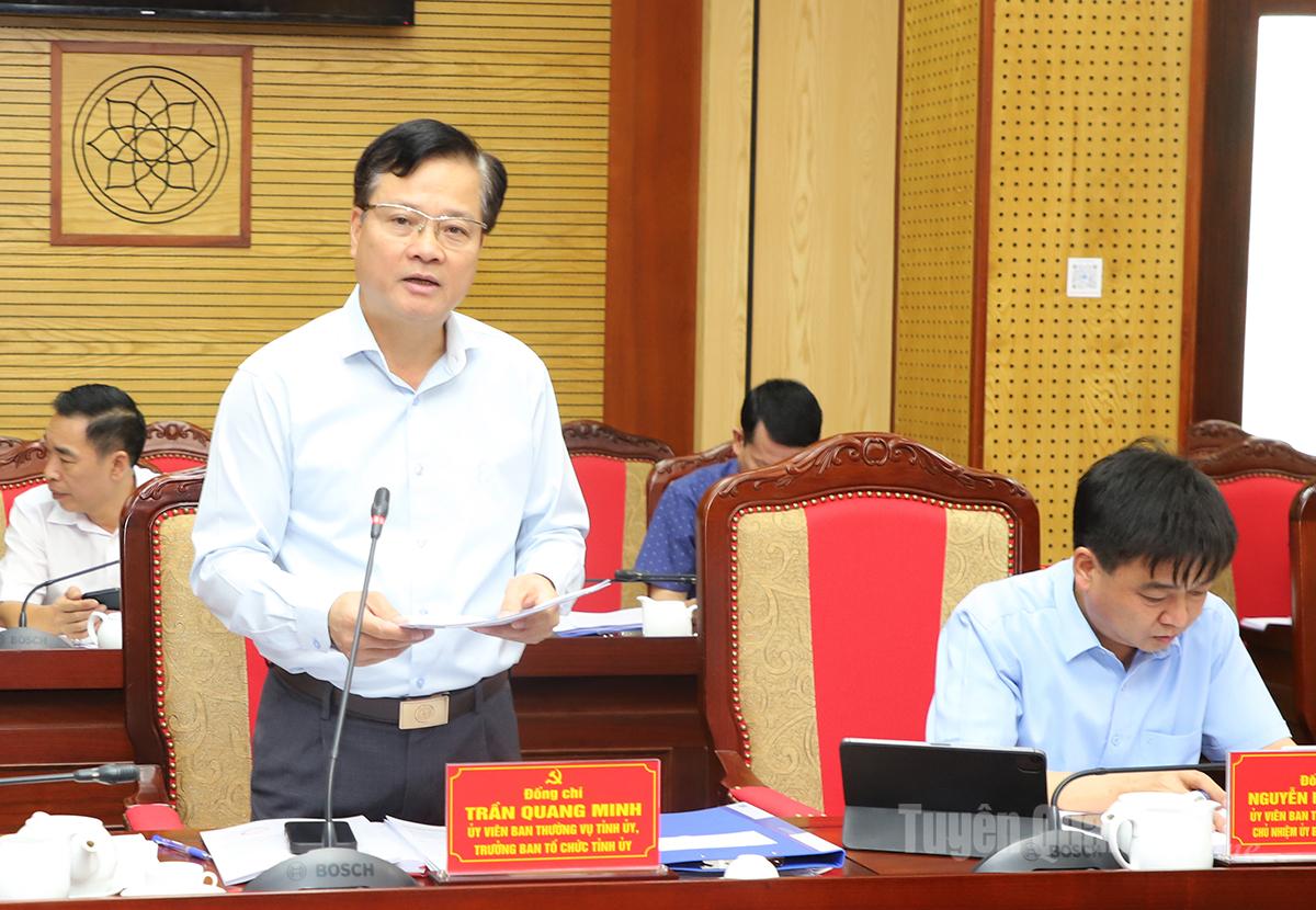 Trưởng ban Tổ chức Tỉnh ủy Trần Quang Minh thảo luận tại hội nghị.