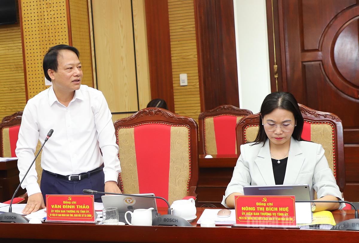 Đồng chí Vân Đình Thảo, Ủy viên Ban Thường vụ Tỉnh ủy, Giám đốc Sở Tài chính thảo luận tại hội nghị.