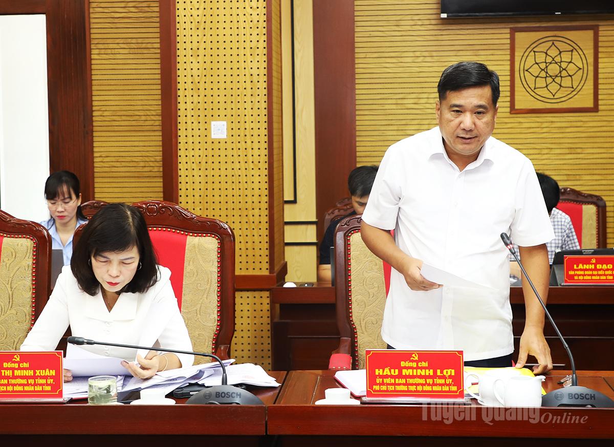 Phó Chủ tịch Thường trực HĐND tỉnh Hầu Minh Lợi thảo luận tại hội nghị.