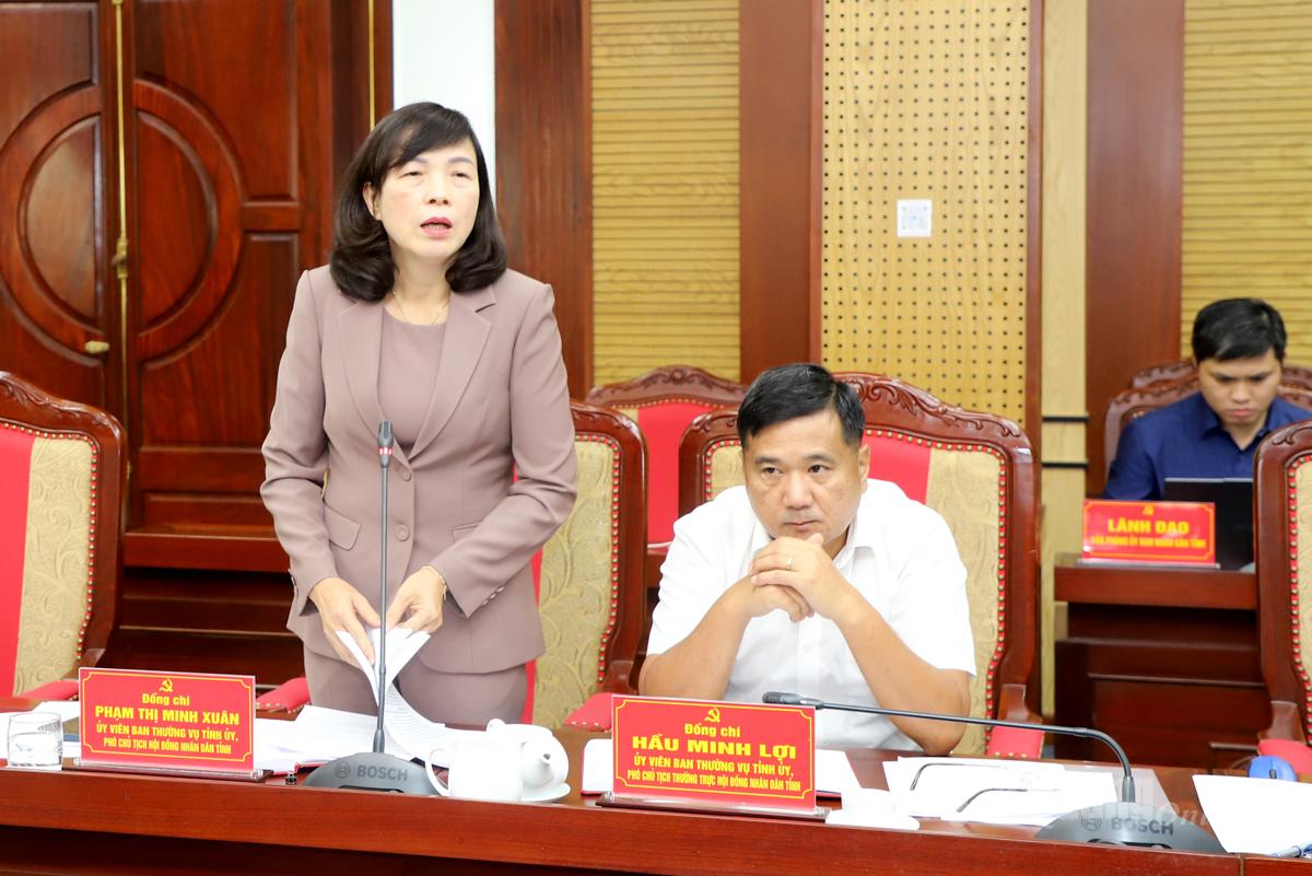 Phó Chủ tịch HĐND tỉnh Phạm Thị Minh Xuân thảo luận tại hội nghị.