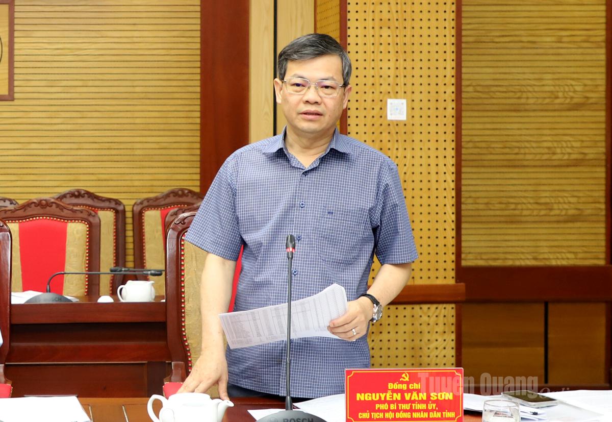 Phó Bí thư Tỉnh ủy, Chủ tịch HĐND tỉnh Nguyễn Văn Sơn thảo luận tại hội nghị.