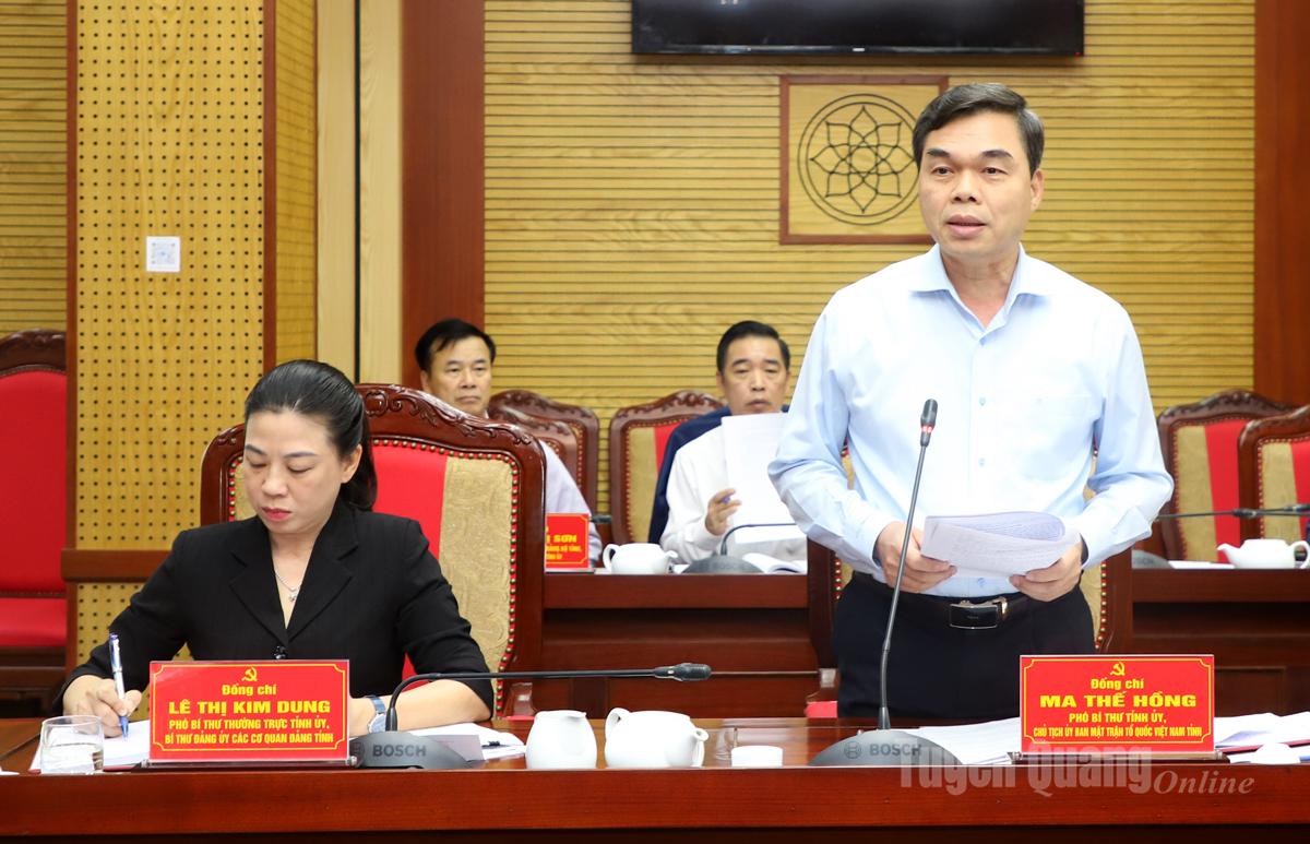 Phó Bí thư Tỉnh ủy, Chủ tịch Ủy ban MTTQ tỉnh Ma Thế Hồng thảo luận tại hội nghị.