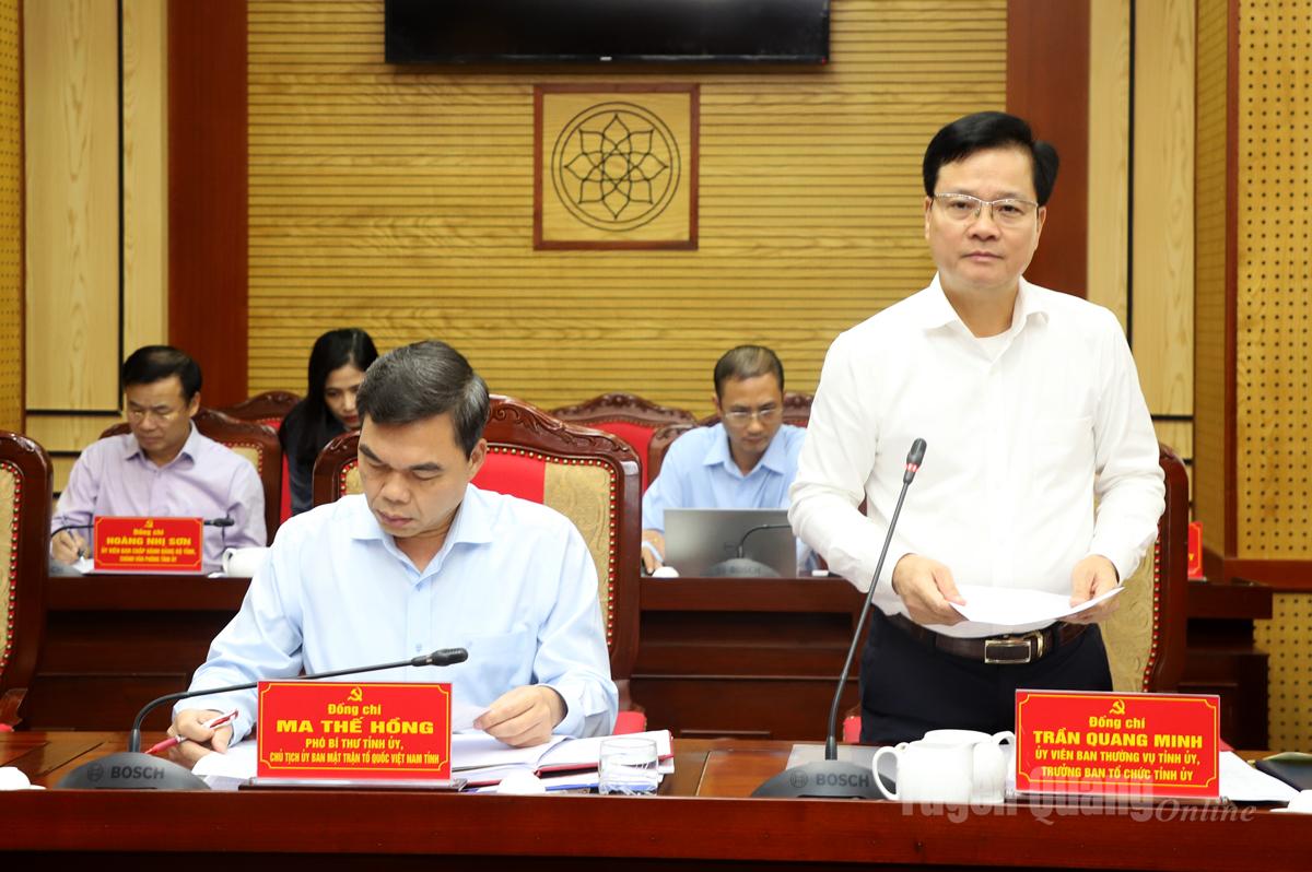Trưởng Ban Tổ chức Tỉnh ủy Trần Quang Minh thảo luận tại hội nghị.