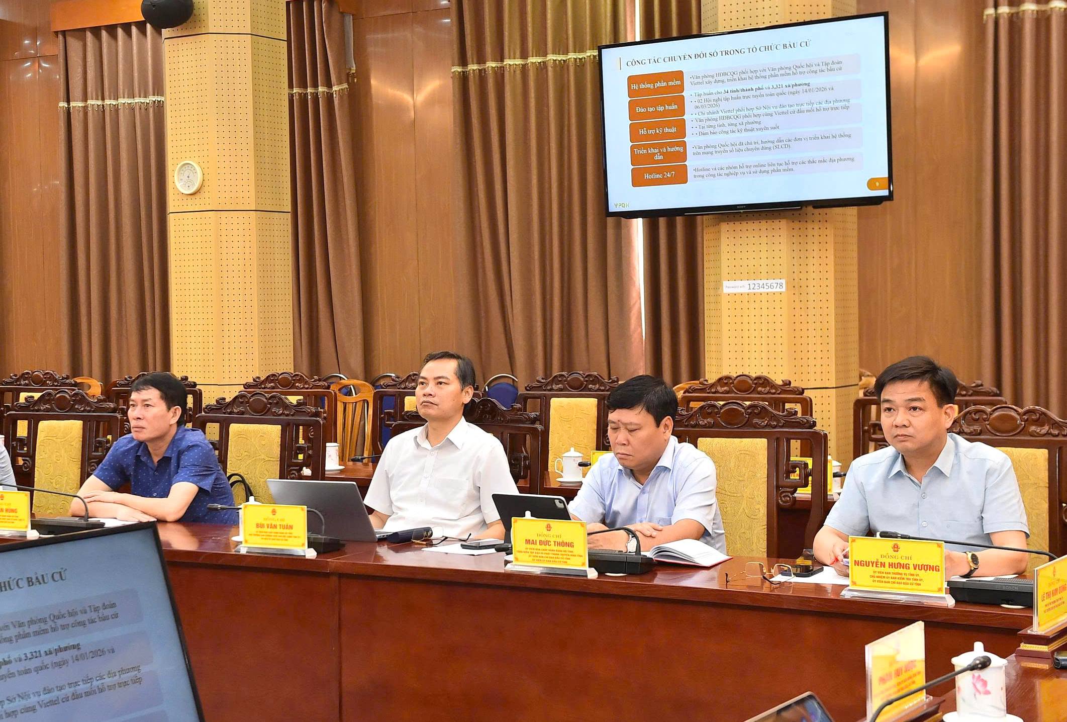 Dự hội nghị có các đồng chí Ủy viên BTV Tỉnh ủy: Hầu Minh Lợi, Phó Chủ tịch Thường trực HĐND tỉnh, Ủy viên Ban Chỉ đạo bầu cử tỉnh, Phó Chủ tịch Ủy ban bầu cử tỉnh; Nguyễn Mạnh Tuấn, Phó Chủ tịch Thường trực UBND tỉnh, Ủy viên Ban Chỉ đạo bầu cử tỉnh, Phó Chủ tịch Ủy ban bầu cử tỉnh; Hoàng Gia Long, Phó Chủ tịch UBND tỉnh, Ủy viên Ban Chỉ đạo bầu cử tỉnh, Ủy viên Ủy ban bầu cử tỉnh; Nguyễn Hưng Vượng, Chủ nhiệm Ủy ban Kiểm tra Tỉnh ủy, Ủy viên Ban Chỉ đạo bầu cử tỉnh; các đồng chí Ủy viên Ban Chỉ đạo, Ủy viên Ủy ban bầu cử tỉnh, lãnh đạo các Sở, ngành, đơn vị liên quan.