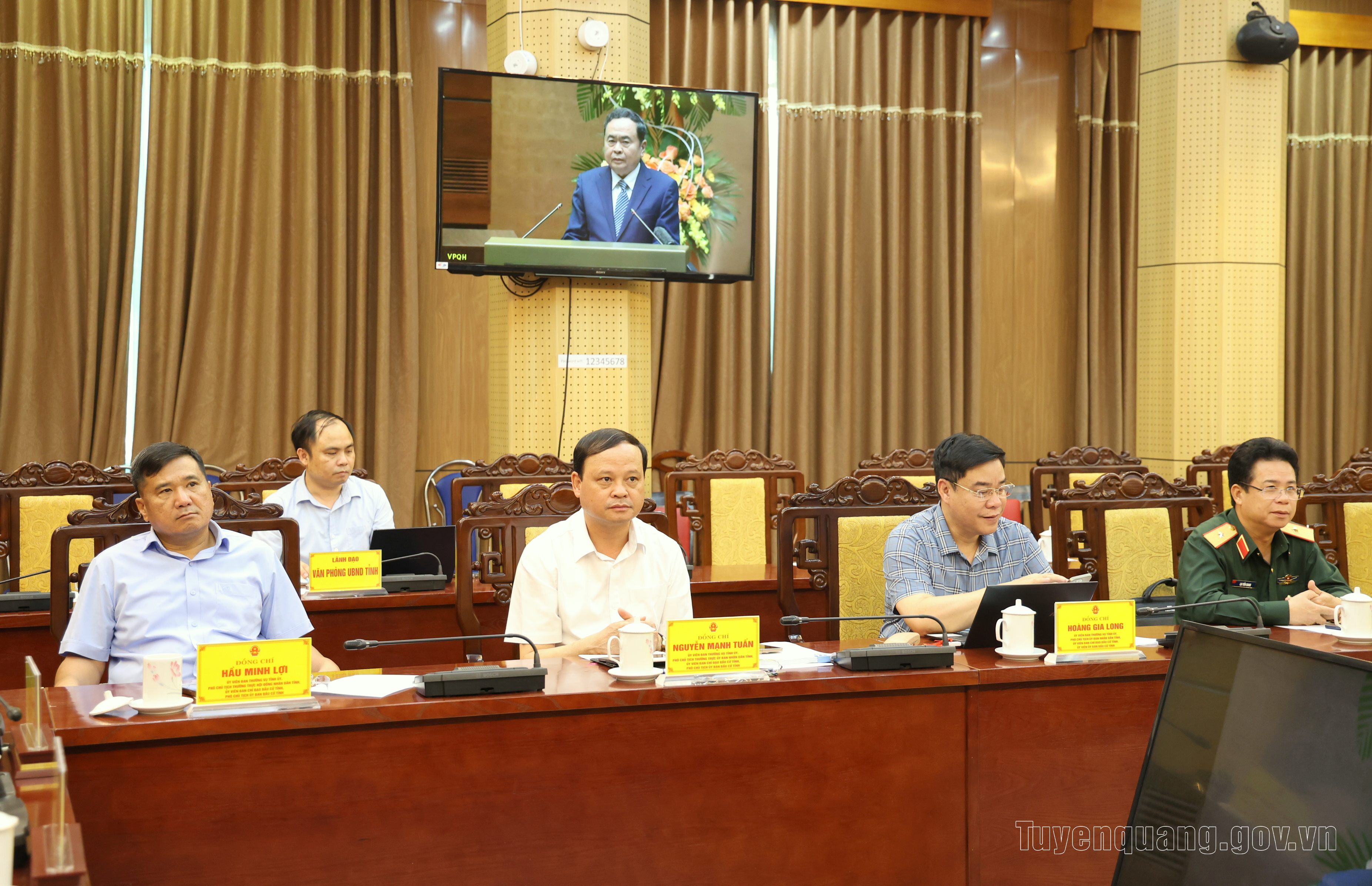 Các đồng chí: Lê Thị Kim Dung, Phó Bí thư Thường trực Tỉnh ủy, Phó trưởng Ban Chỉ đạo bầu cử tỉnh; Ma Thế Hồng, Phó Bí thư Tỉnh ủy, Chủ tịch Ủy ban MTTQ tỉnh, Phó trưởng Ban Chỉ đạo bầu cử tỉnh dự, chủ trì hội nghị tại điểm cầu Tuyên Quang.