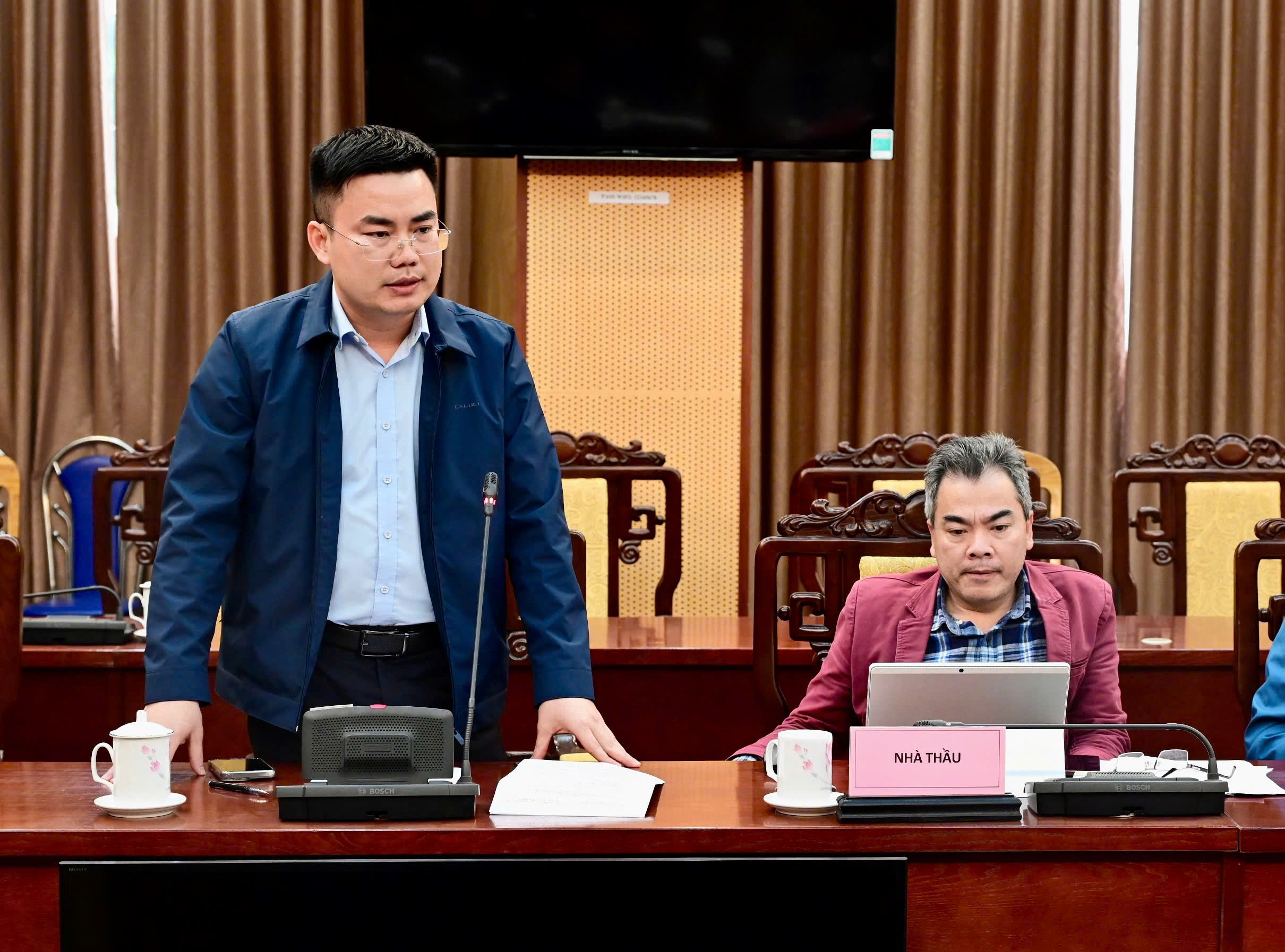 Đại diện nhà thầu thi công phát biểu tại cuộc họp.