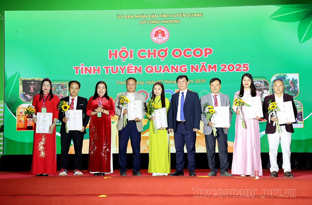 Hội chợ OCOP tỉnh Tuyên Quang năm 2025 được tổ chức với quy mô trên 100 gian hàng, diễn ra từ ngày 27 đến hết ngày 31/12/2025. Hội chợ tạo điều kiện để các doanh nghiệp, hợp tác xã, cơ sở sản xuất kinh doanh trưng bày, giới thiệu sản phẩm, kết nối cung cầu, mở rộng thị trường tiêu thụ, đồng thời là dịp giao lưu, trao đổi kinh nghiệm, ký kết hợp tác giữa các đơn vị.