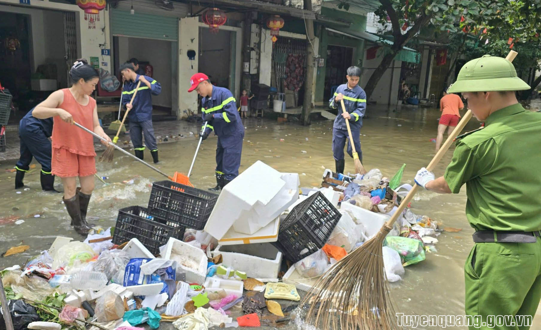 Với phương châm “4 tại chỗ”, cấp ủy, chính quyền các địa phương đã huy động lực lượng chức năng, người dân tham gia khắc phục hậu quả mưa lũ. Ngày 3/10, Công an tỉnh, Bộ Chỉ huy Quân sự tỉnh, Tỉnh đoàn đã huy động hàng nghìn cán bộ, chiến sĩ, đoàn viên, thanh niên cùng phối hợp nhân dân dọn dẹp nhà cửa, thu gom rác thải, bùn đất trên các tuyến phố.