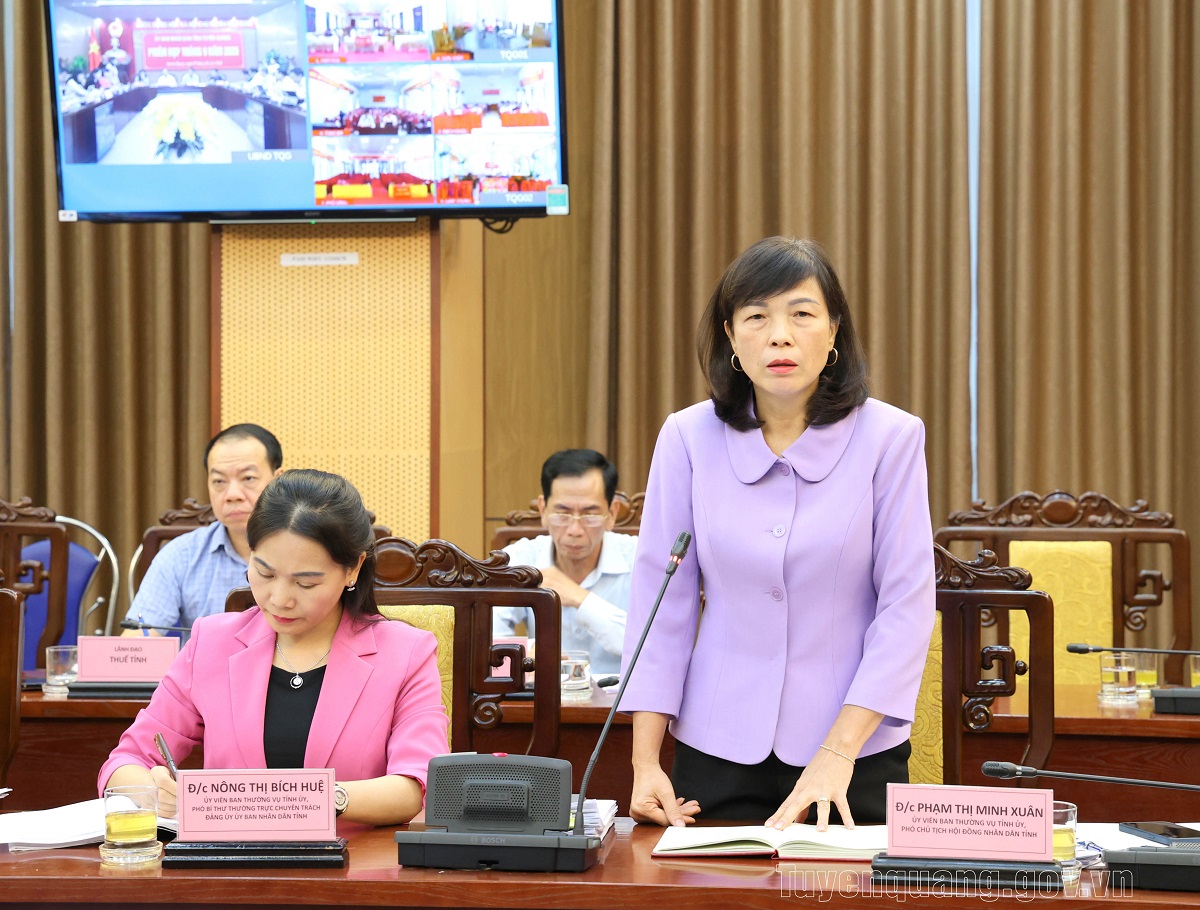 Đồng chí Phó Chủ tịch HĐND tỉnh Phạm Thị Minh Xuân phát biểu tại phiên họp.