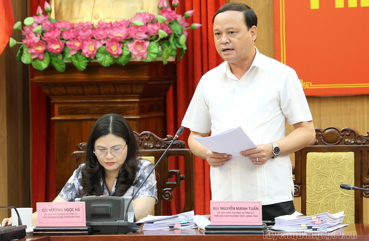 Đồng chí Phó Chủ tịch Thường trực UBND tỉnh Nguyễn Mạnh Tuấn phát biểu tại phiên họp.