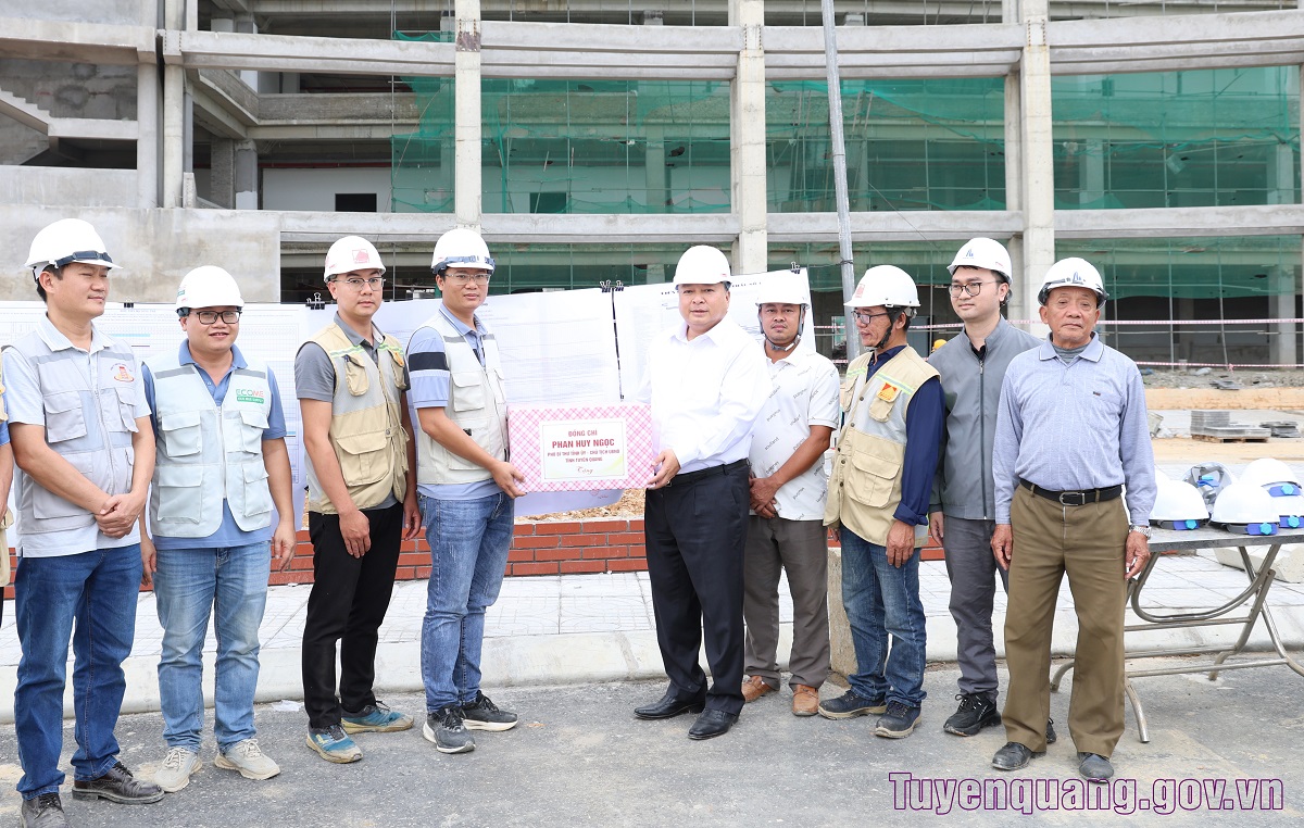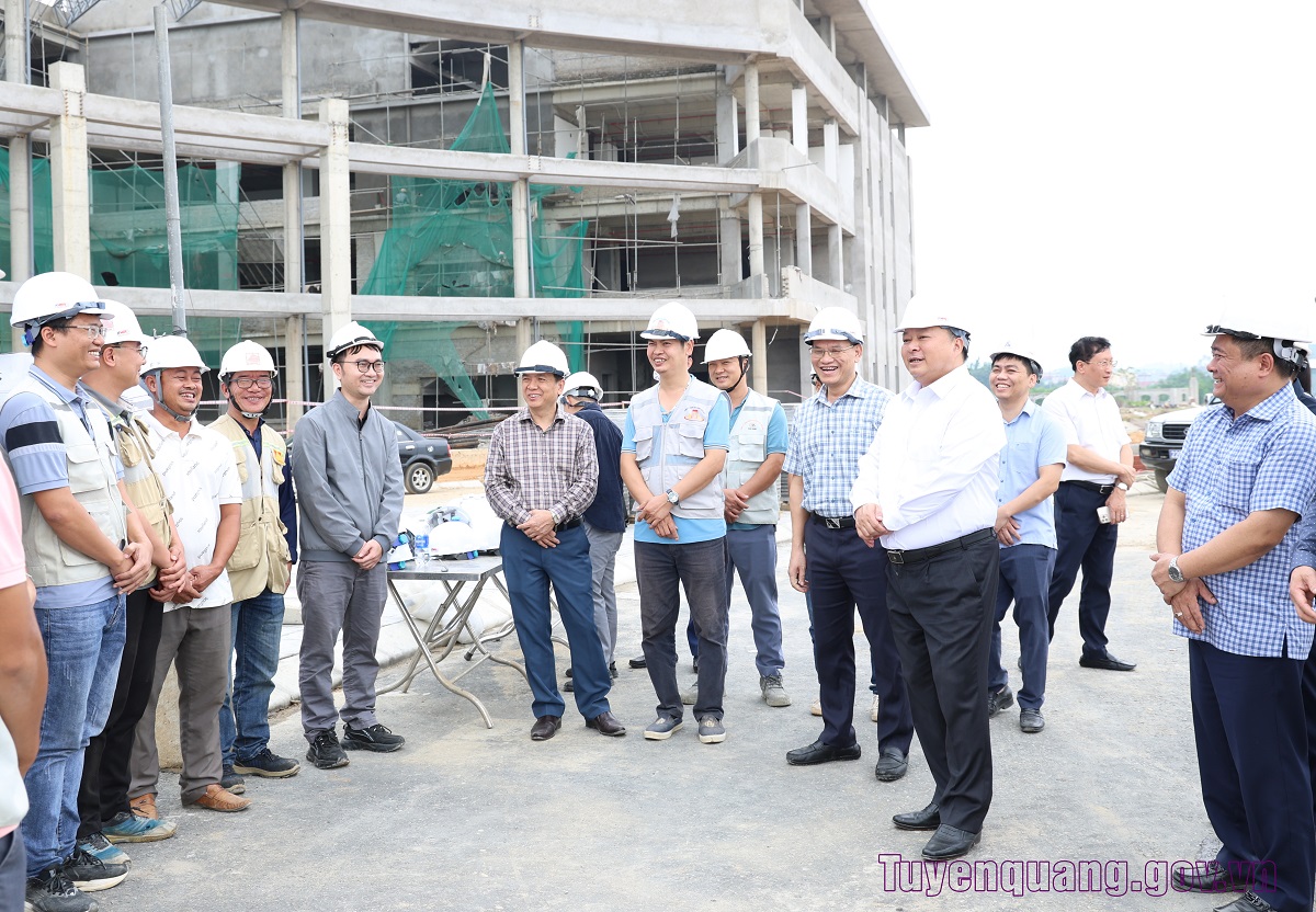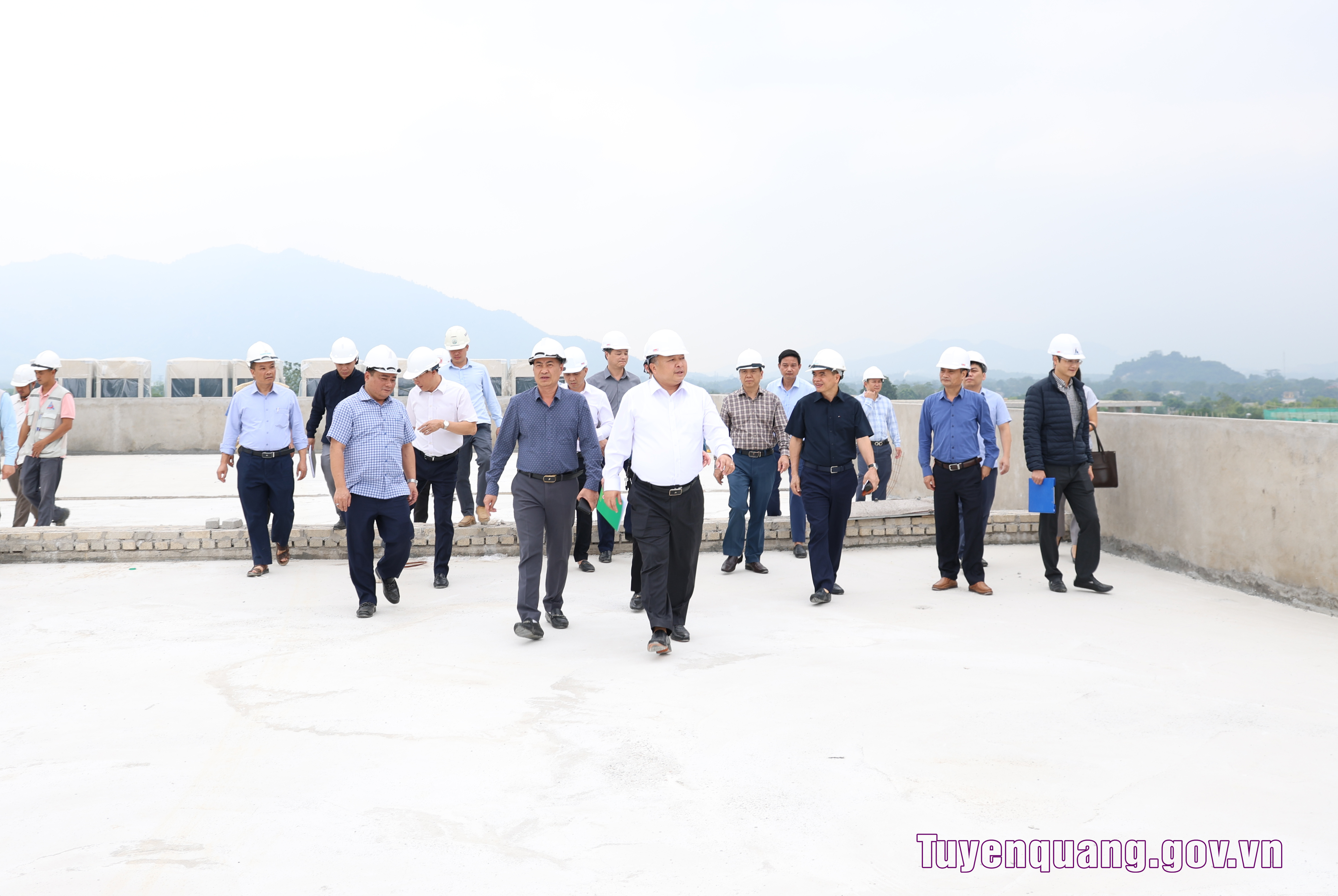Đồng chí Chủ tịch UBND tỉnh Phan Huy Ngọc kiểm tra thực địa thi công dự án Bệnh viện đa khoa tỉnh Tuyên Quang.