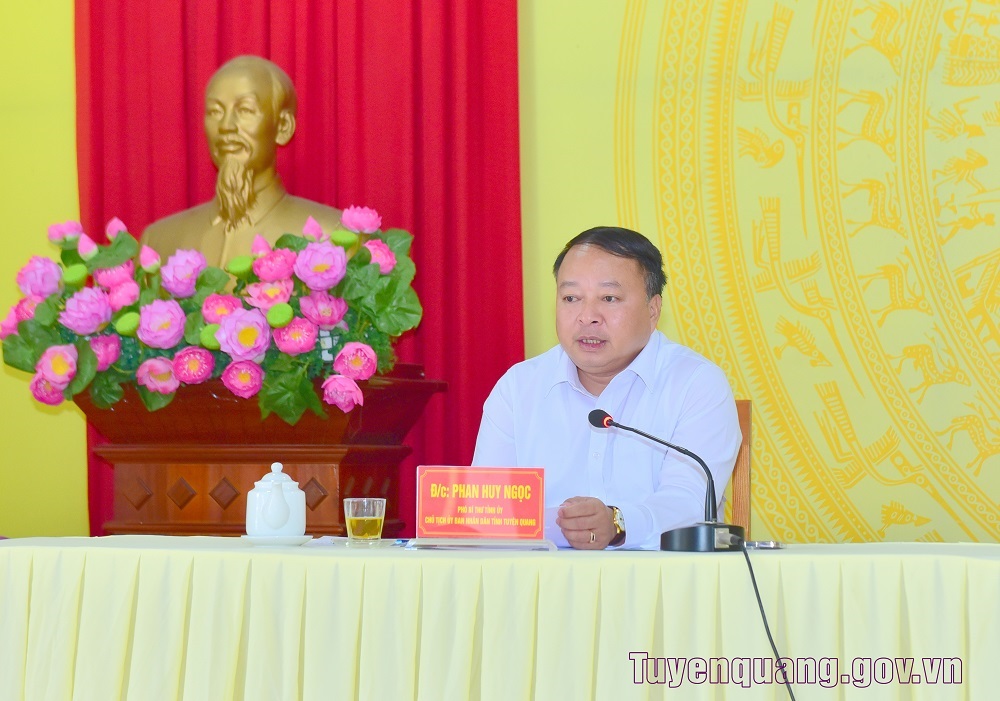 Đồng chí Chủ tịch UBND tỉnh Phan Huy Ngọc phát biểu chỉ đạo tại buổi làm việc.