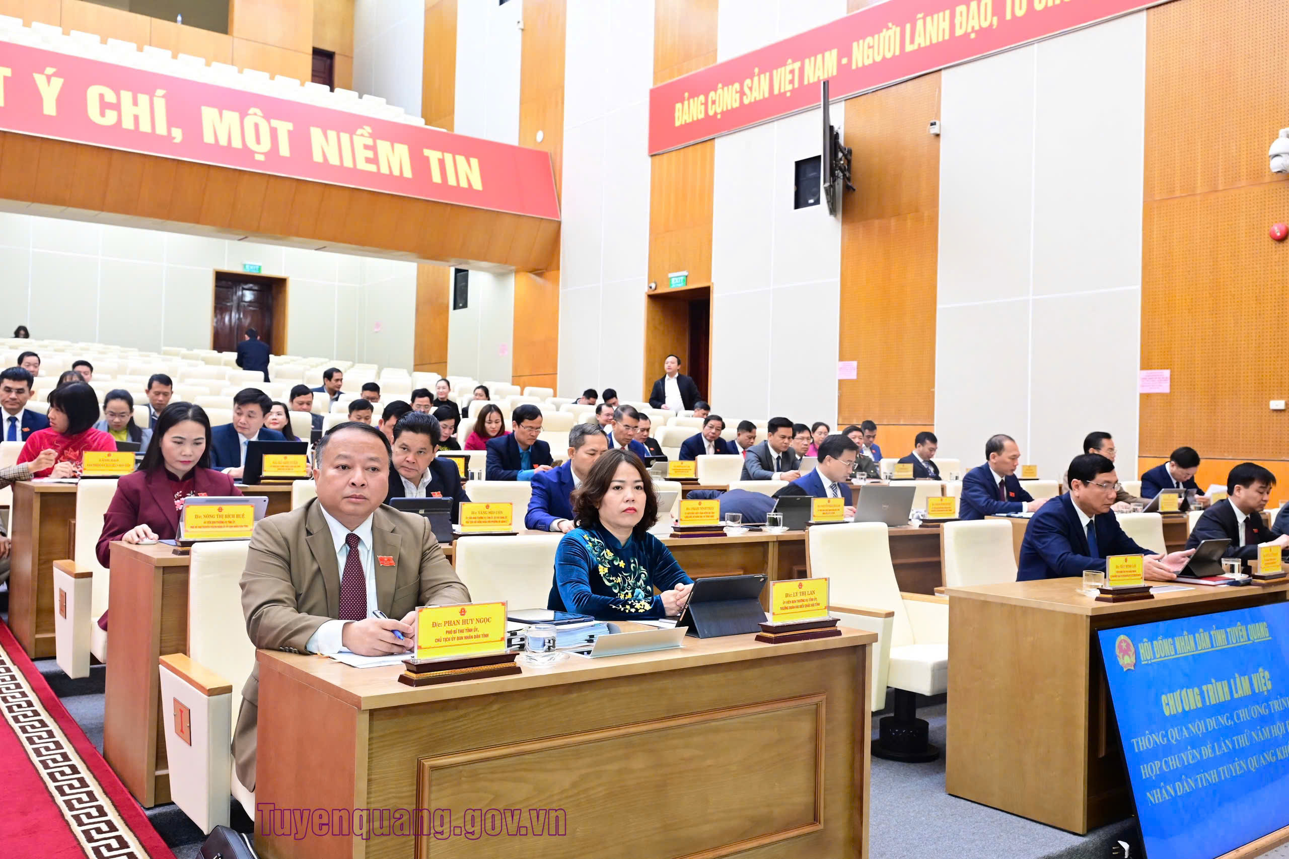 Tại kỳ họp, trên cơ sở xem xét các tờ trình của UBND tỉnh; báo cáo thẩm tra các ban của HĐND tỉnh, các đại biểu đã nêu cao tinh thần trách nhiệm, phát huy dân chủ, trí tuệ, tập trung nghiên cứu và thống nhất, biểu quyết thông qua các Dự thảo Nghị quyết, bao gồm: