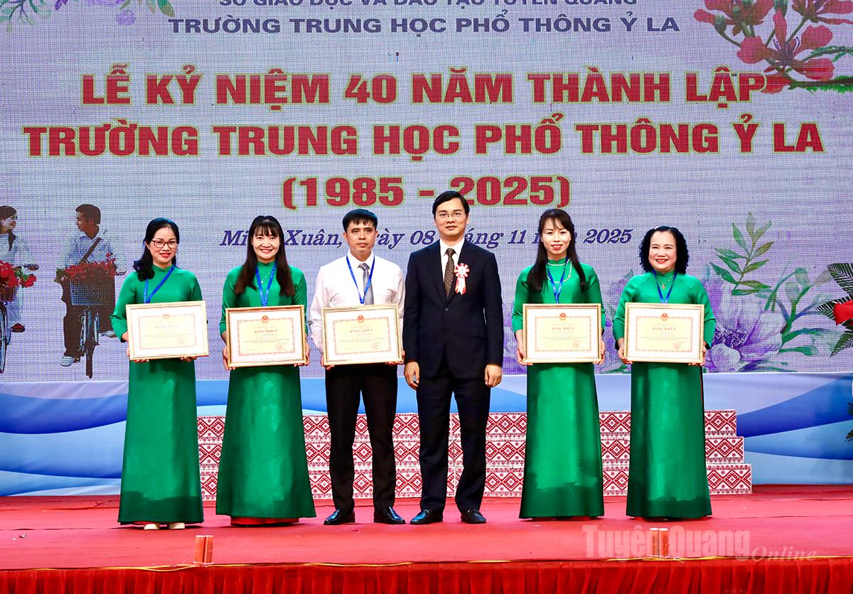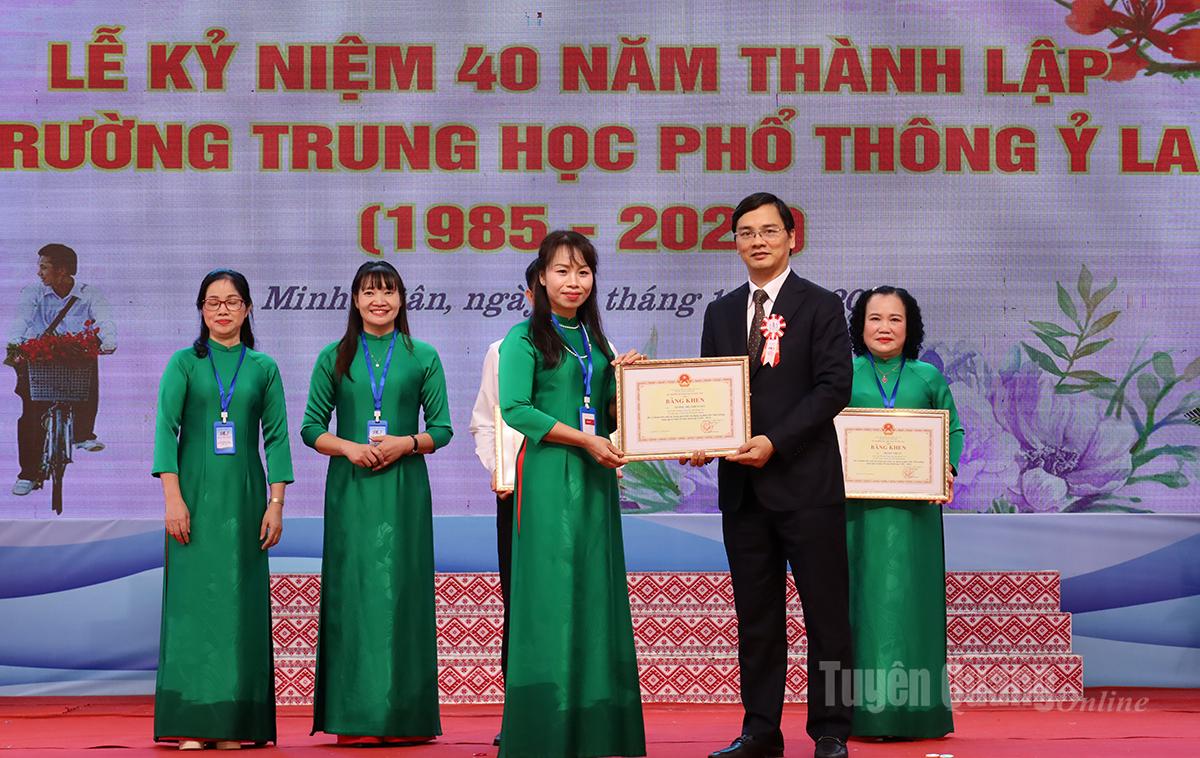 Phó Chủ tịch HĐND tỉnh Lê Thị Thanh Trà tặng Bằng khen của Bộ Giáo dục và Đào tạo cho tập thể Trường THPT Ỷ La.