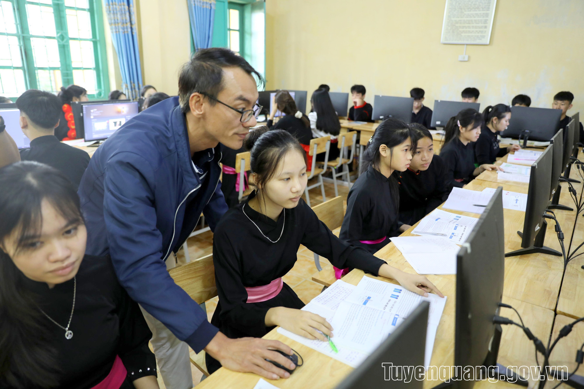 Học sinh Trường Phổ thông Dân tộc nội trú THCS và THPT Chiêm Hóa trong giờ học môn Tin học.
