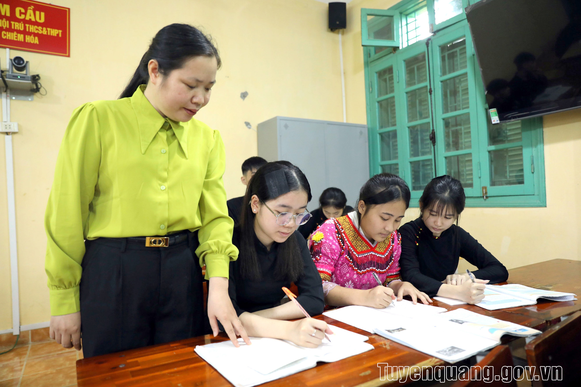 Cô giáo Nguyễn Thị Thu Hằng, Trường Phổ thông Dân tộc nội trú THCS và THPT Chiêm Hóa chia sẻ: Nhà trường thực hiện nghiêm túc việc rèn luyện cho học sinh phương pháp tự học, tự nghiên cứu nhằm giúp các em tiếp cận và vận dụng kiến thức mới thông qua việc giải quyết các nhiệm vụ học tập trong bài học. Trên lớp, giáo viên dành nhiều thời gian cho học sinh trình bày, thảo luận, luyện tập, thực hành và bảo vệ kết quả học tập, góp phần phát huy tính chủ động, sáng tạo của học sinh.