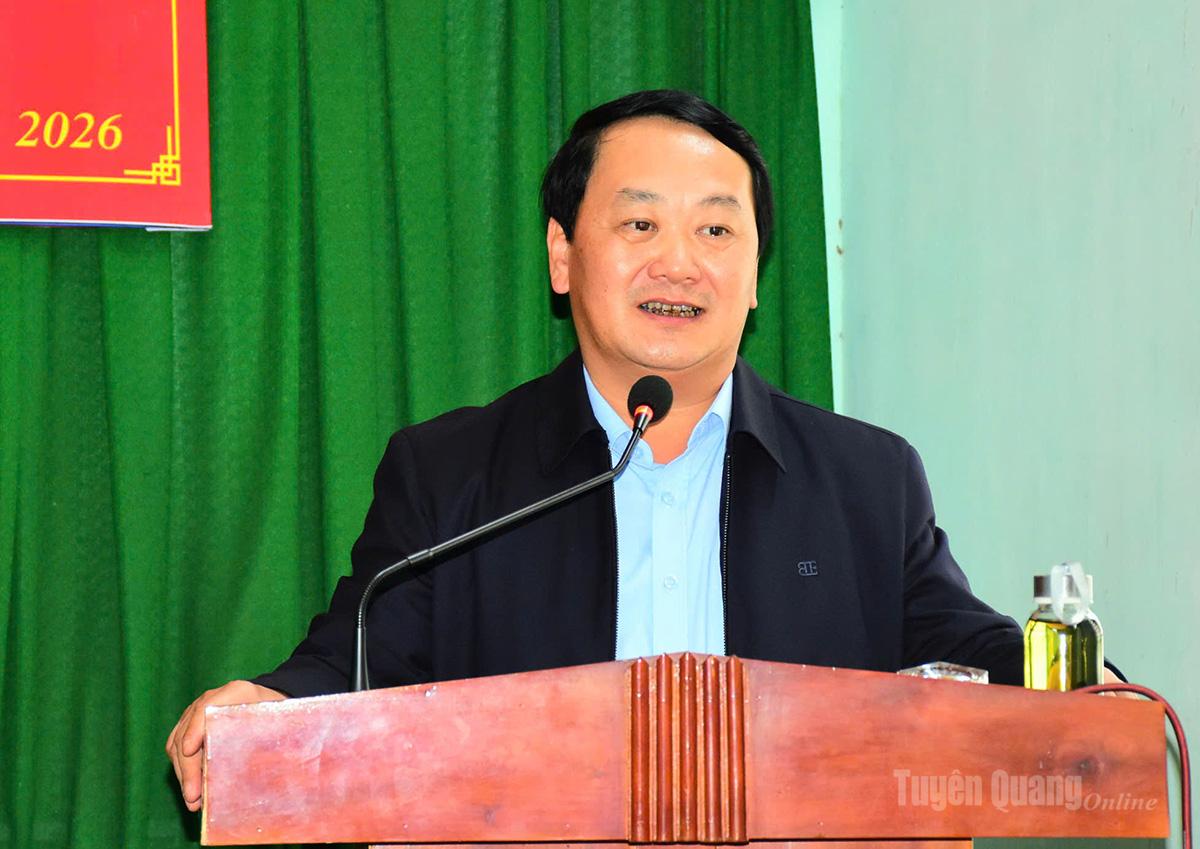 Đồng chí Hầu A Lềnh, Bí thư Tỉnh ủy Tuyên Quang phát biểu tại hội nghị.