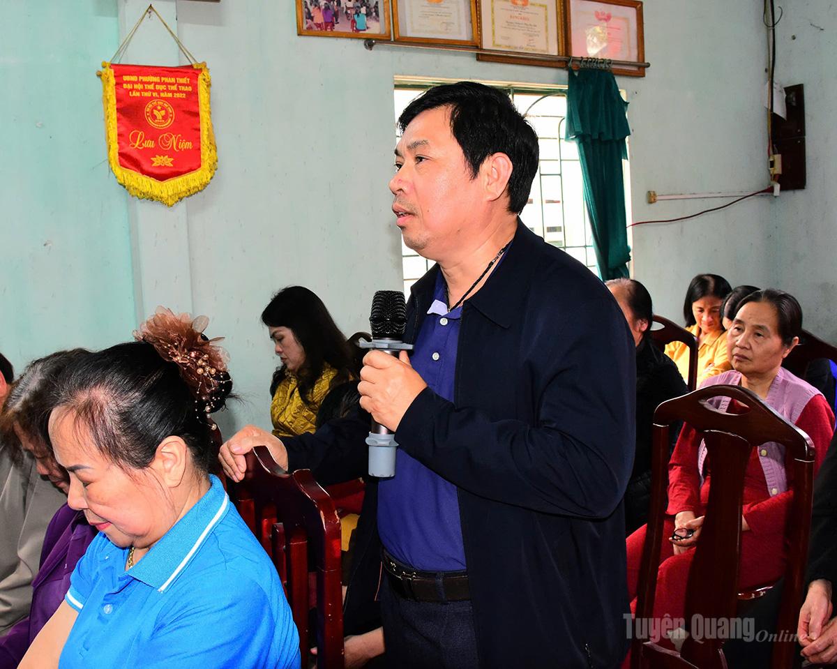 Cử tri tổ dân phố Phan Thiết 6, phường Minh Xuân phát biểu ý kiến tại hội nghị.