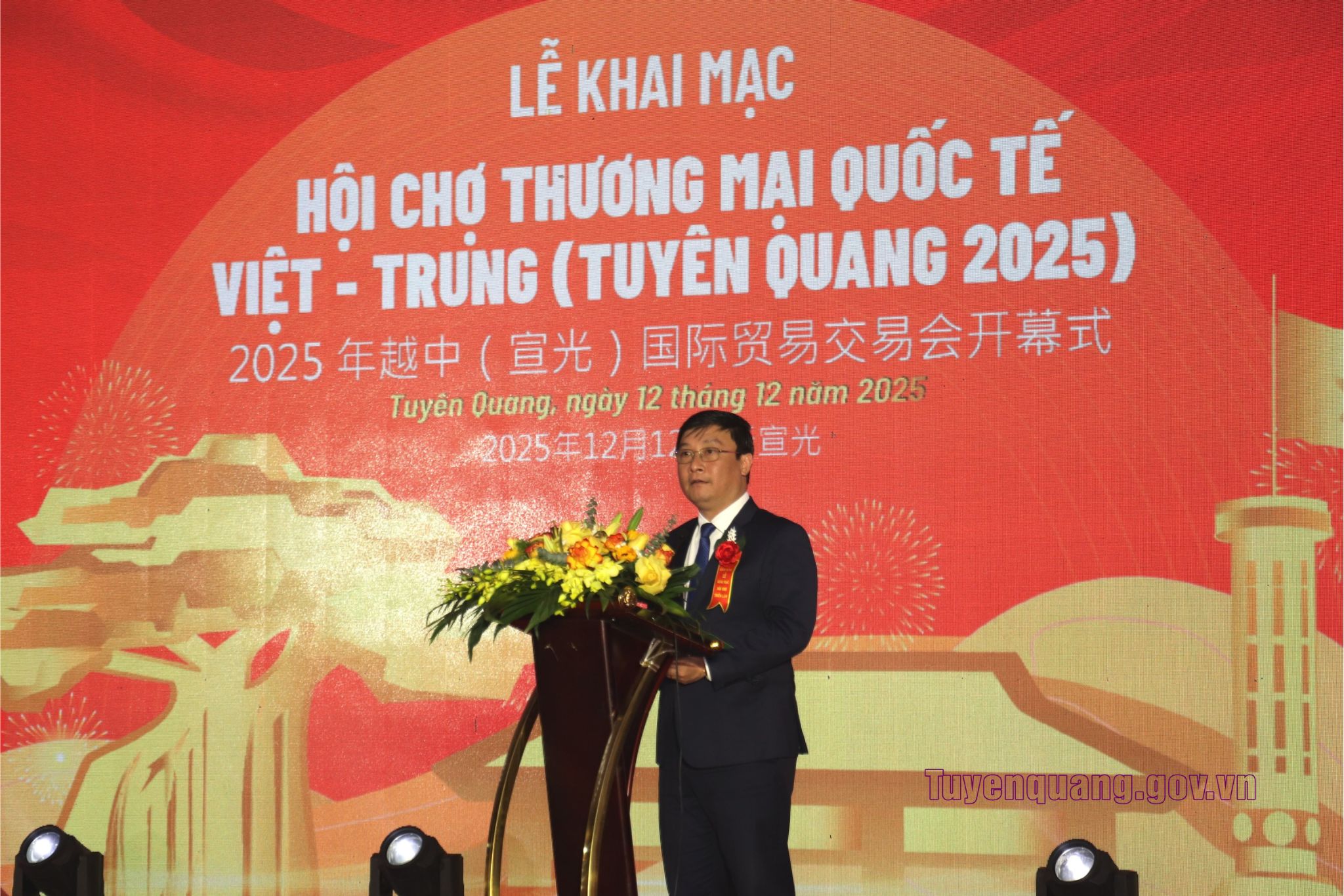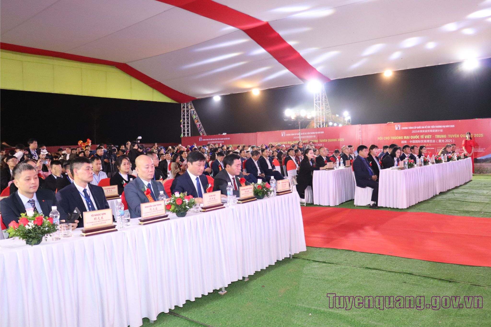 Phát biểu tại Lễ khai mạc, Thứ trưởng Bộ Công thương Nguyễn Sinh Nhật Tân nhấn mạnh: Việt Nam - Trung Quốc là hai nước láng giềng, núi sông liền một dải, nhân dân hai nước có tình hữu nghị truyền thống lâu đời, tinh thần hợp tác ngày càng được nâng cao và không ngừng phát triển mạnh mẽ. Hội chợ thương mại quốc tê Việt - Trung được tổ chức tại Tuyên Quang 2025 với mục đích tăng cường giới thiệu, quảng bá sản phẩm. Đẩy mạnh giao lưu, hợp tác, trao đổi học tập kinh nghiệm và tìm kiếm, mở rộng thị trường tiêu thụ sản phẩm tới nhà phân phối, doanh nghiệp xuất khẩu trong cả nước. Góp phần thúc đẩy giao lưu, hợp tác giữa tỉnh Tuyên Quang (Việt Nam) với tỉnh Vân Nam, tỉnh Quảng Tây (Trung Quốc) nói riêng; giữa Việt Nam với Trung Quốc và một số nước, vùng lãnh thổ khác trên thế giới nói chung, góp phần nâng cao giá trị xuất nhập khẩu hàng hóa qua các cặp cửa khẩu tỉnh Tuyên Quang, từng bước xây dựng tỉnh Tuyên Quang trở thành cửa ngõ quan trọng, trung tâm kết nối giao thương kinh tế giữa Việt Nam và các nước ASEAN với vùng Tây Nam - Trung Quốc, cùng đồng lòng xây dựng tình hữu nghị, hướng tới phát triển chung.