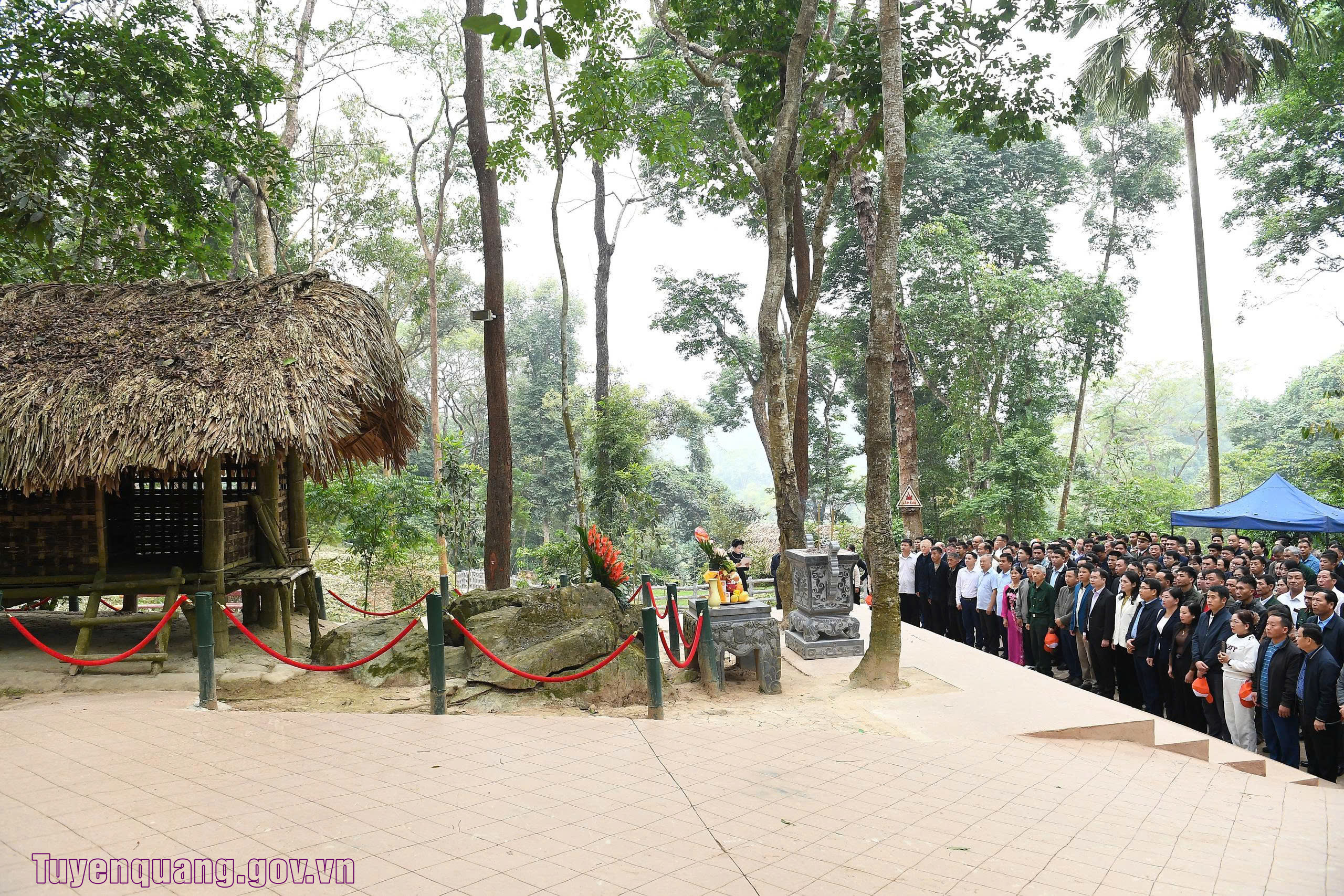 Du khách dâng hương tại lán Nà Nưa – nơi Chủ tịch Hồ Chí Minh ở và làm việc từ tháng 5 đến tháng 8/1945, chuẩn bị cho Tổng khởi nghĩa Tháng Tám.