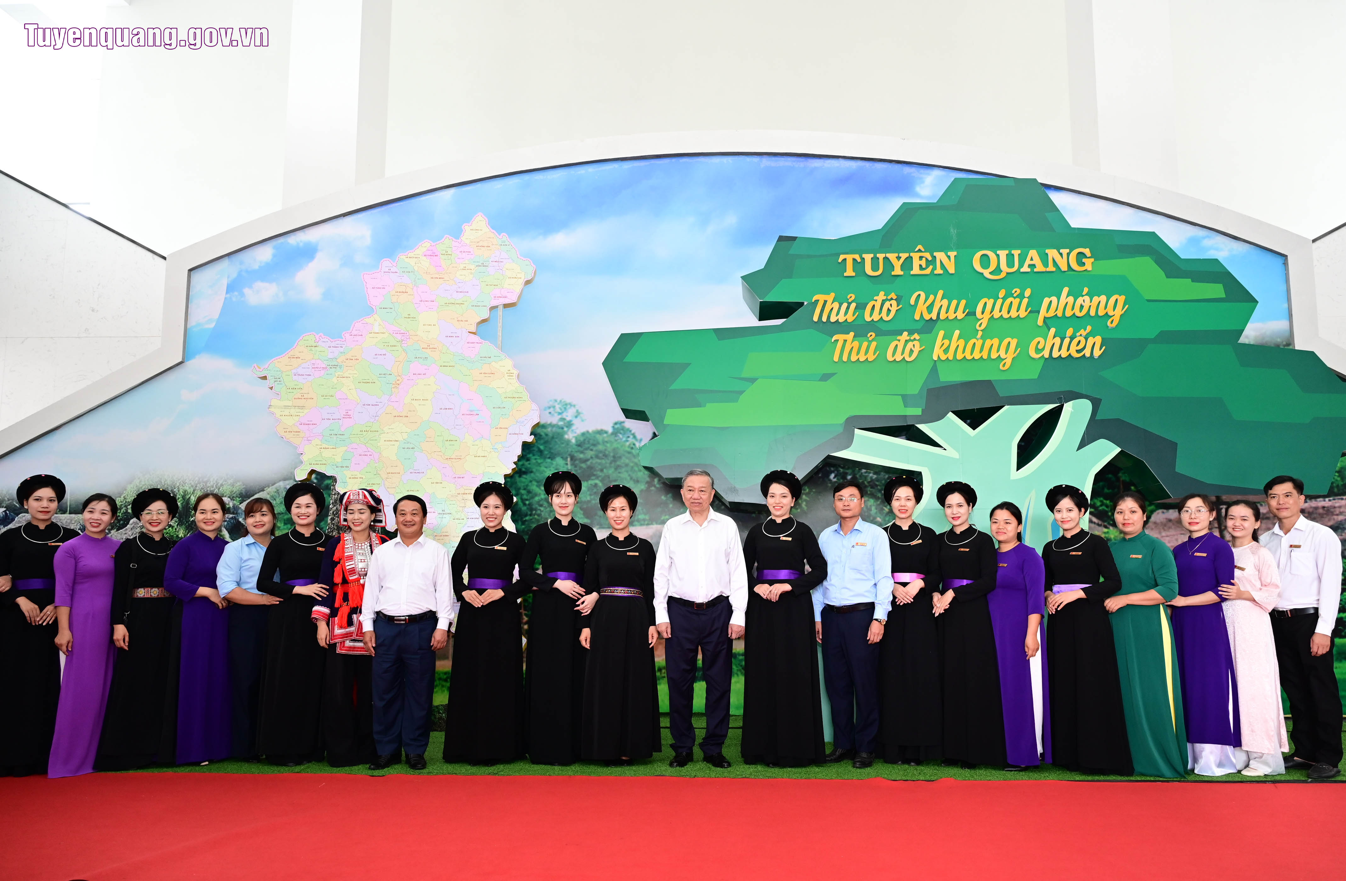 Tập thể cán bộ, viên chức, nhân viên Bảo tàng ATK vinh dự chụp ảnh lưu niệm cùng các đồng chí:Tổng Bí thư Tô Lâm và Bí thư Tỉnh ủy Hầu A Lềnh.