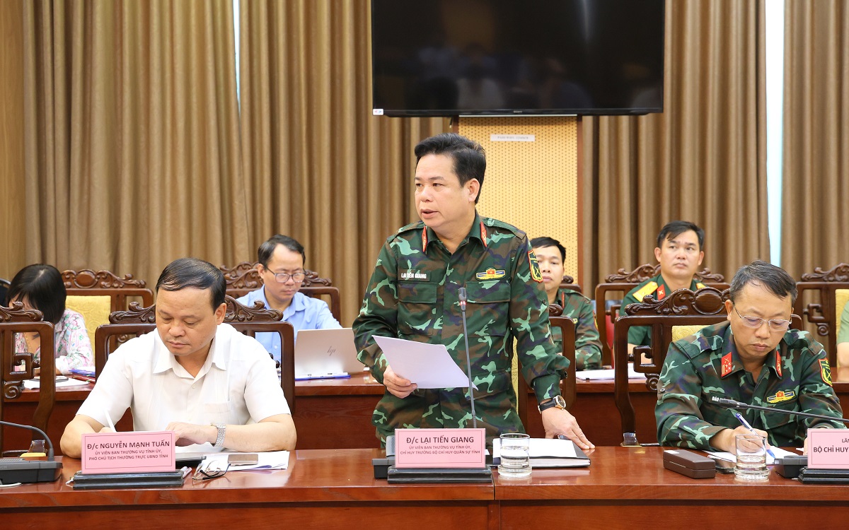 Lãnh đạo Bộ Chỉ huy Quân sự tỉnh báo cáo công tác phòng, chống mưa lũ.