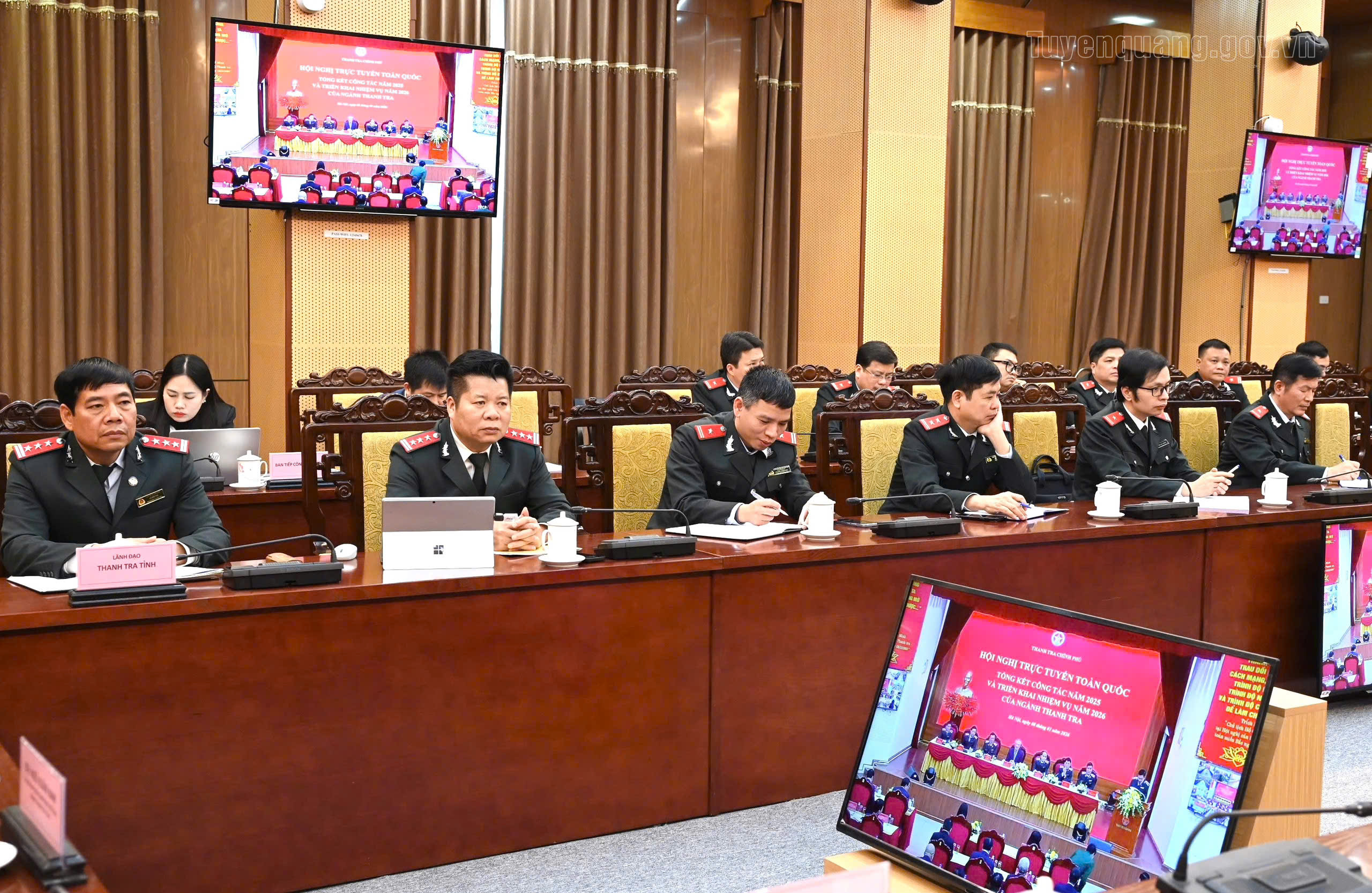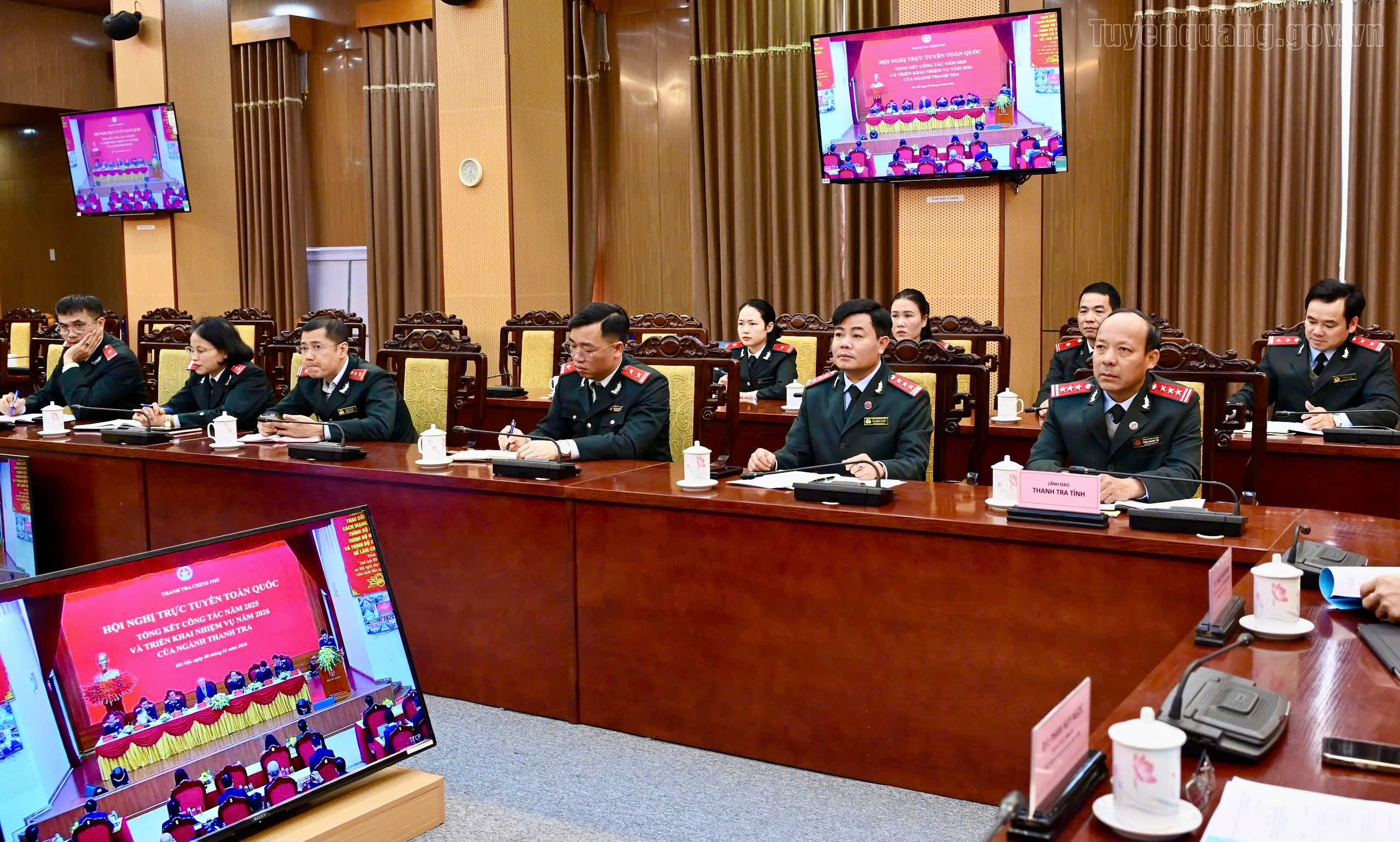 Chủ tịch UBND tỉnh Phan Huy Ngọc và lãnh đạo Thanh tra tỉnh dự, chủ trì tại điểm cầu Tuyên Quang.