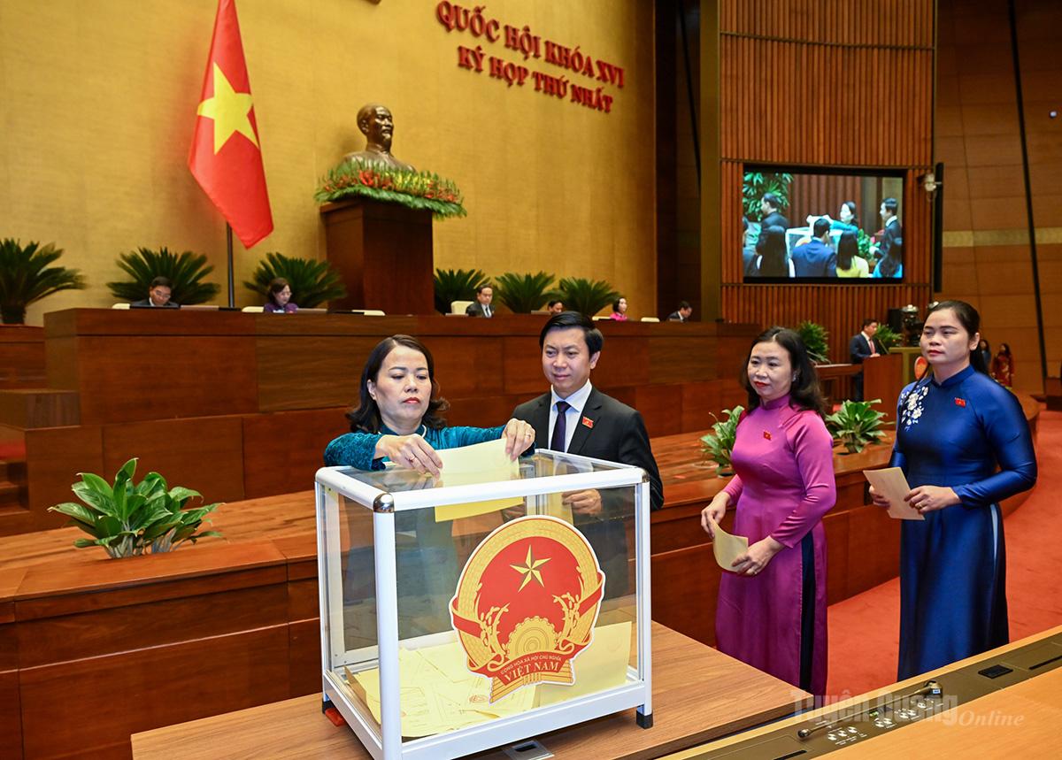 Quốc hội họp phiên toàn thể tại Hội trường thực hiện quy trình thông qua Nghị quyết bầu Chủ tịch nước. Với 495/495 đại biểu tham gia biểu quyết tán thành (bằng 100% đại biểu Quốc hội có mặt và bằng 99% tổng số đại biểu Quốc hội), Quốc hội đã thông qua Nghị quyết bầu đồng chí Tô Lâm, Tổng Bí thư Ban Chấp hành Trung ương Đảng Cộng sản Việt Nam, đại biểu Quốc hội khóa XVI giữ chức Chủ tịch nước Cộng hòa xã hội chủ nghĩa Việt Nam nhiệm kỳ 2026-2031. Sau khi được bầu, tân Chủ tịch nước đã tuyên thệ nhậm chức theo quy định.