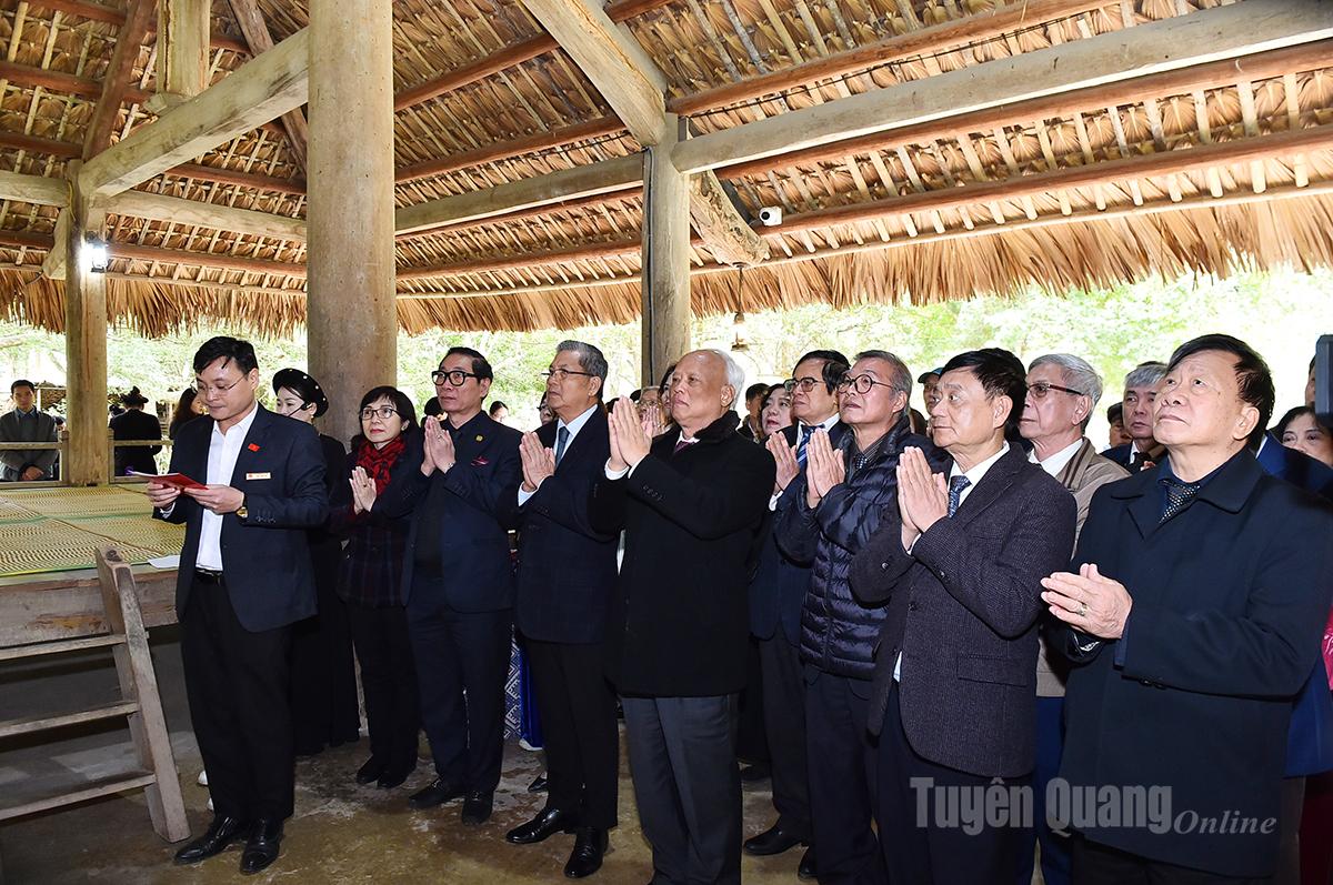 Các đồng chí nguyên lãnh đạo Quốc hội thăm, dâng hương tại đình Tân Trào.