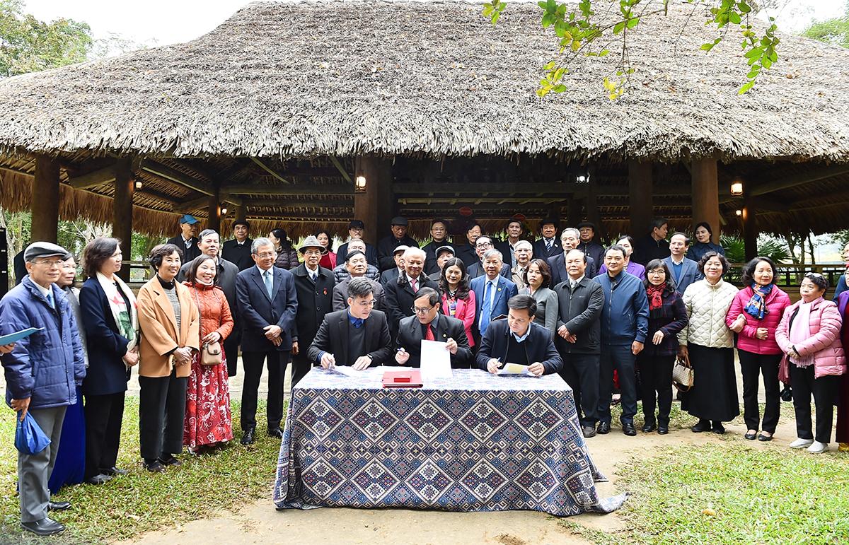 Các đồng chí nguyên lãnh đạo Quốc hội, lãnh đạo tỉnh chứng kiến bàn giao Đề tài khoa học “Xây dựng một số mô hình phát triển du lịch vùng chiến khu Việt Bắc” cho tỉnh.