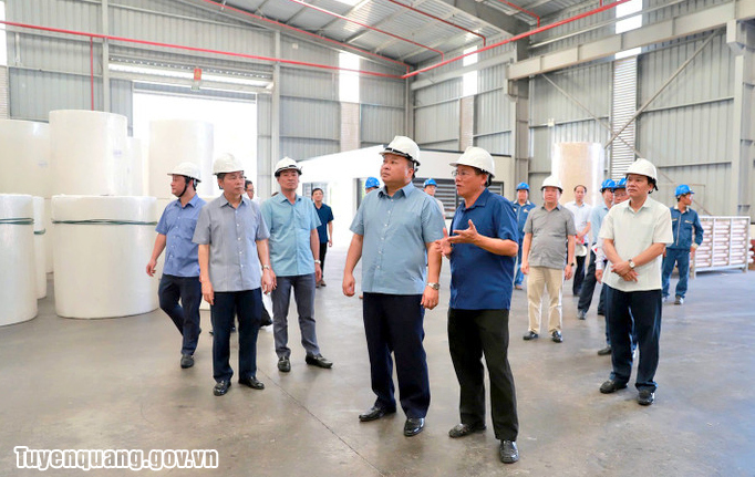 Đồng chí Phan Huy Ngọc, Phó Bí thư Tỉnh ủy, Chủ tịch UBND tỉnh kiểm tra dây chuyền sản xuất của Công ty Hồng Phát (tại Khu công nghiệp Long Bình An).