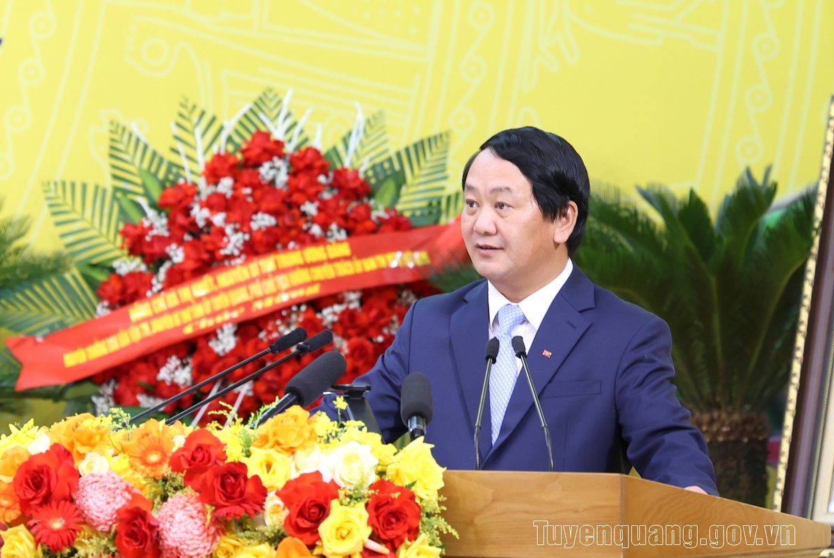 Đồng chí cũng nhấn mạnh cần đổi mới các phong trào thi đua, các cuộc vận động theo hướng thực chất, gắn với mục tiêu phát triển bền vững, tăng trưởng xanh; tiếp tục đẩy mạnh phong trào “Vì người nghèo - không để ai bị bỏ lại phía sau”, nhân rộng mô hình an sinh cộng đồng, khuyến khích phát triển kinh tế tư nhân, kinh tế hộ gia đình, hợp tác xã kiểu mới, gắn với bảo tồn, phát huy giá trị văn hóa dân tộc trên địa bàn tỉnh.
