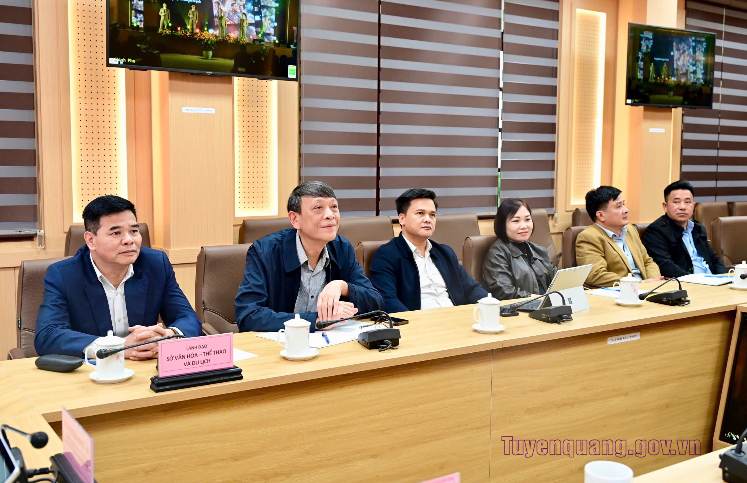 Tại điểm cầu Tuyên Quang, đồng chí Vương Ngọc Hà, Ủy viên BTV Tỉnh ủy, Phó Chủ tịch UBND tỉnh dự và chủ trì hội nghị. Cùng dự có lãnh đạo Sở Văn hóa, Thể thao và Du lịch và các phòng, đơn vị thuộc Sở.