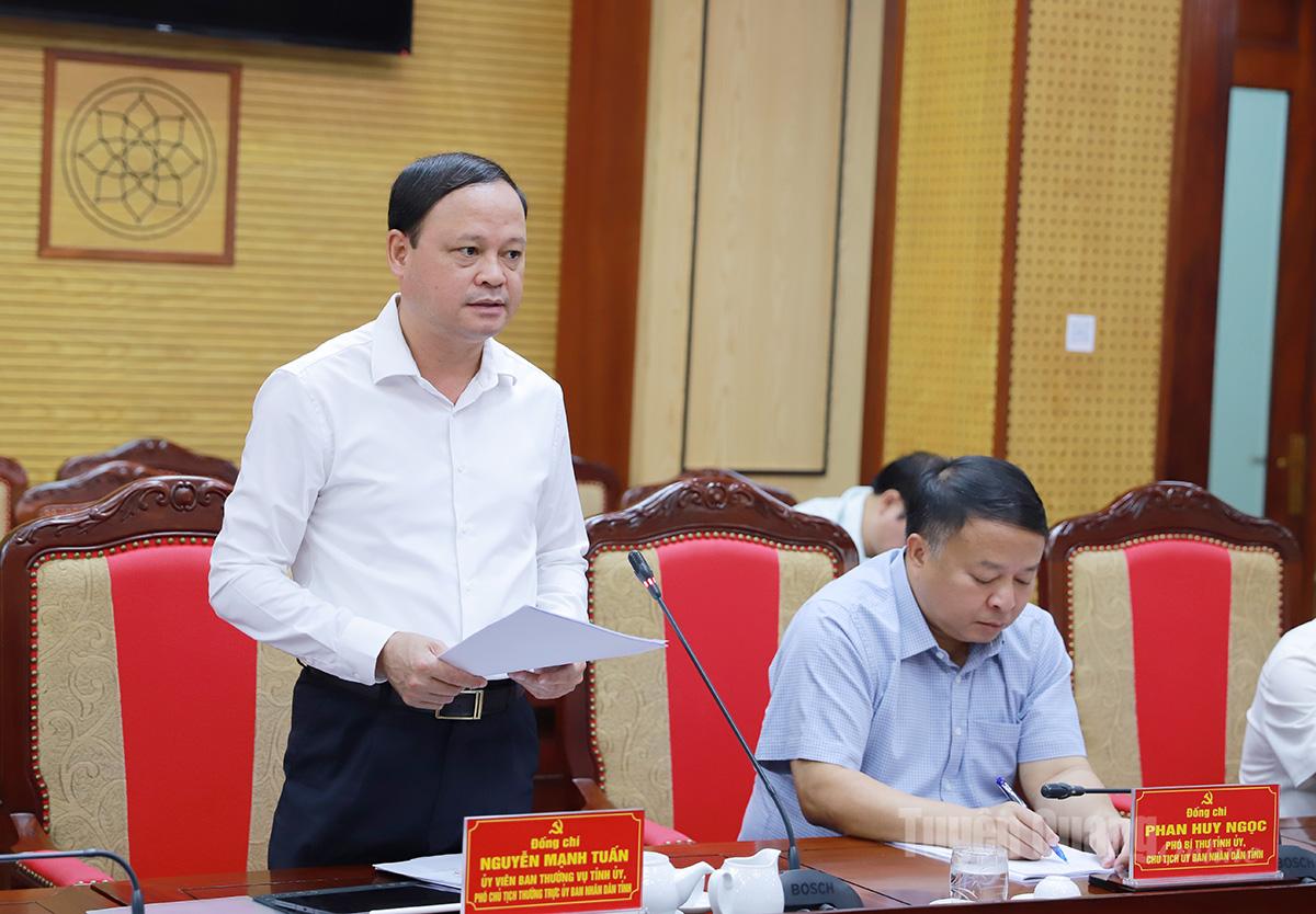 Phó Chủ tịch Thường trực UBND tỉnh Nguyễn Mạnh Tuấn báo cáo tình hình phát triển kinh tế tư nhân của tỉnh.