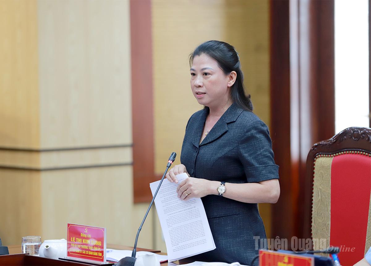 Phó Bí thư Thường trực Tỉnh ủy Lê Thị Kim Dung phát biểu thảo luận tại phiên họp.