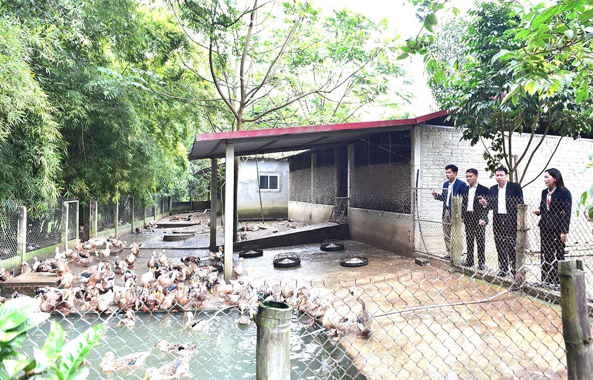 Đồng chí Phó Bí thư Thường trực Đảng ủy UBND tỉnh Nông Thị Bích Huệ và các đại biểu tham quan Hợp tác xã Vịt bầu Hàm Yên, tại thôn 13 Minh Quang, xã Bình Xa.