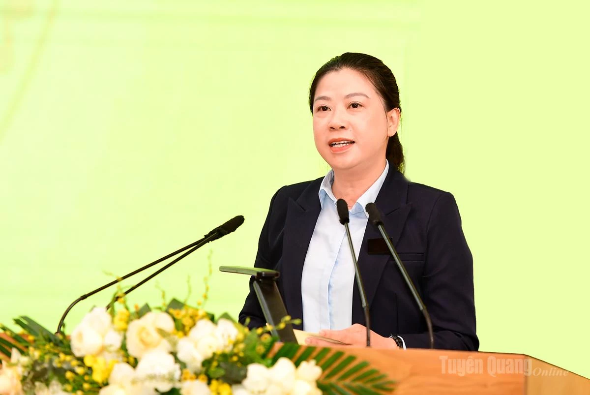 Đồng chí Phó Bí thư Thường trực Tỉnh ủy Lê Thị Kim Dung phát biểu tại buổi gặp mặt.