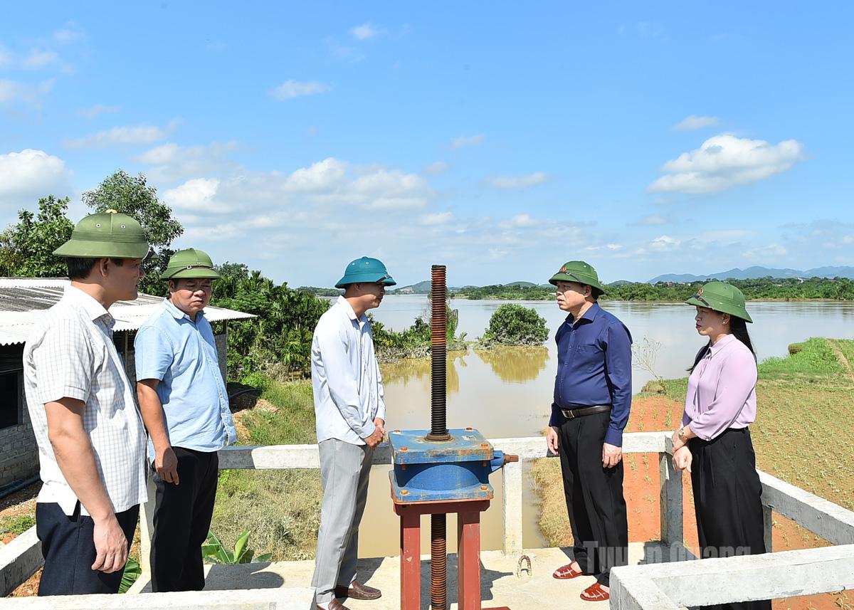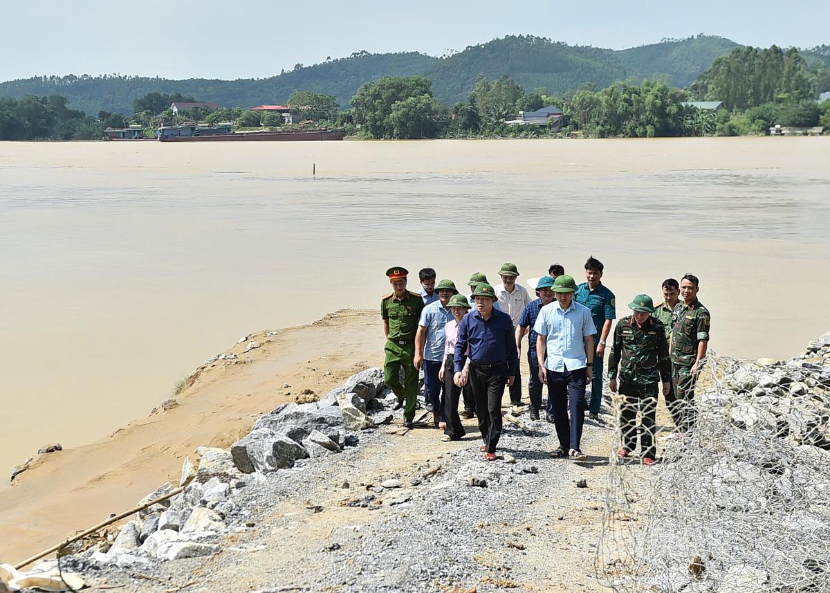 Đoàn công tác đã trực tiếp kiểm tra dọc tuyến đê sông Lô, qua các xã Bình Ca, Đông Thọ, Trường Sinh. Đây là những địa bàn nằm trong khu vực trọng điểm, có nhiều đoạn đê xung yếu, tiềm ẩn nguy cơ mất an toàn khi mực nước sông Lô dâng cao do ảnh hưởng của hoàn lưu cơn bão số 10.
