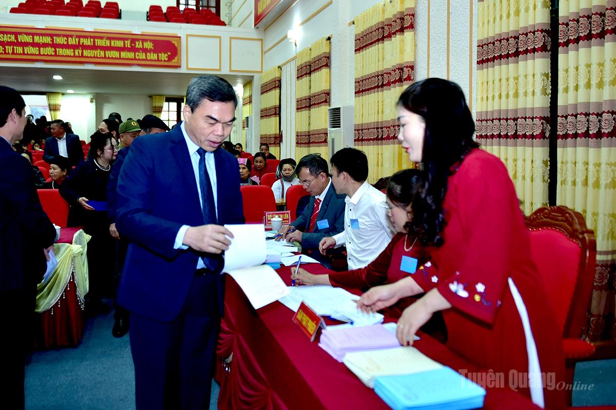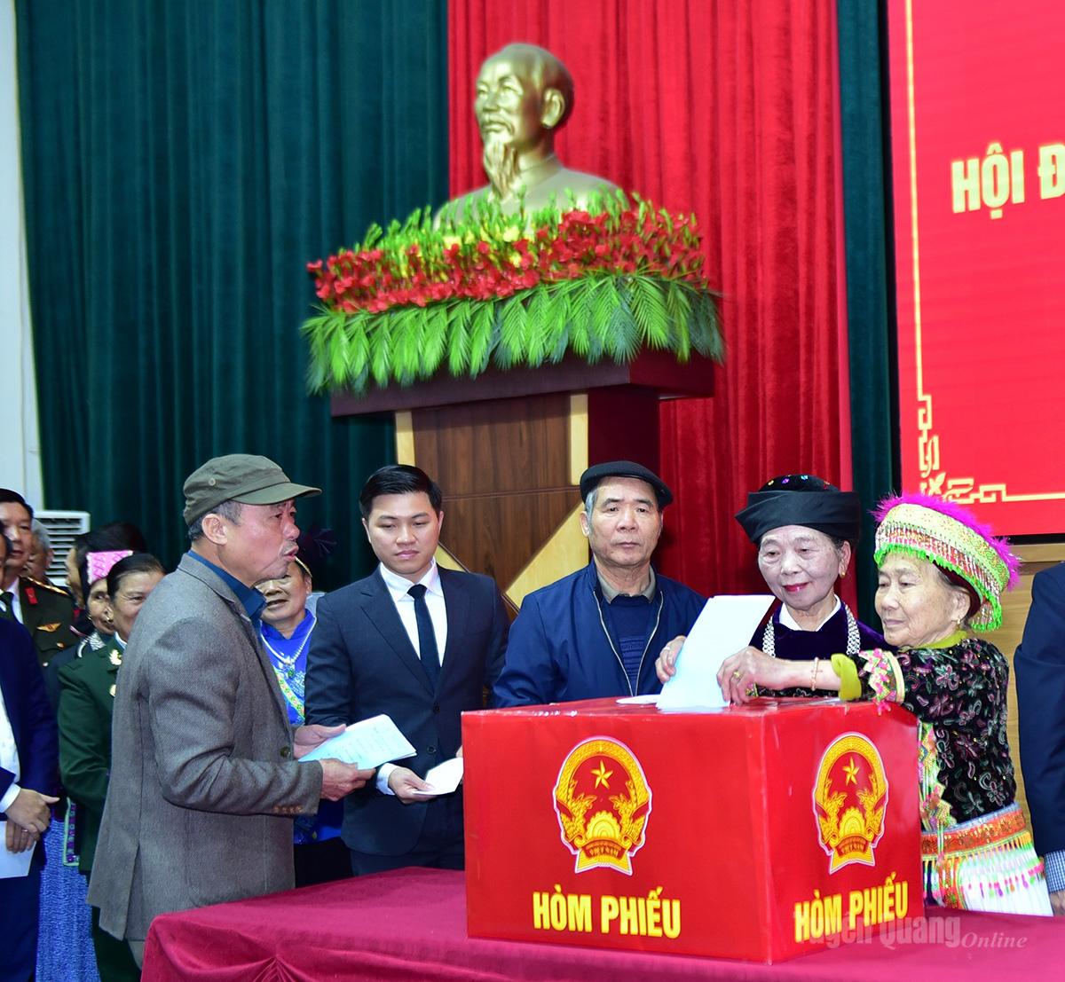 Sau lễ khai mạc diễn ra ngắn gọn, trang trọng và nghe các quy định về bỏ phiếu của các cử tri, đồng chí Ma Thế Hồng, Phó Bí thư Tỉnh ủy, Chủ tịch Ủy ban MTTQ Việt Nam tỉnh cùng hơn 550 cử tri đã thực hiện việc bỏ phiếu bầu các đại biểu theo danh sách niêm yết tại Khu vực bỏ phiếu số 1, xã Quản Bạ.