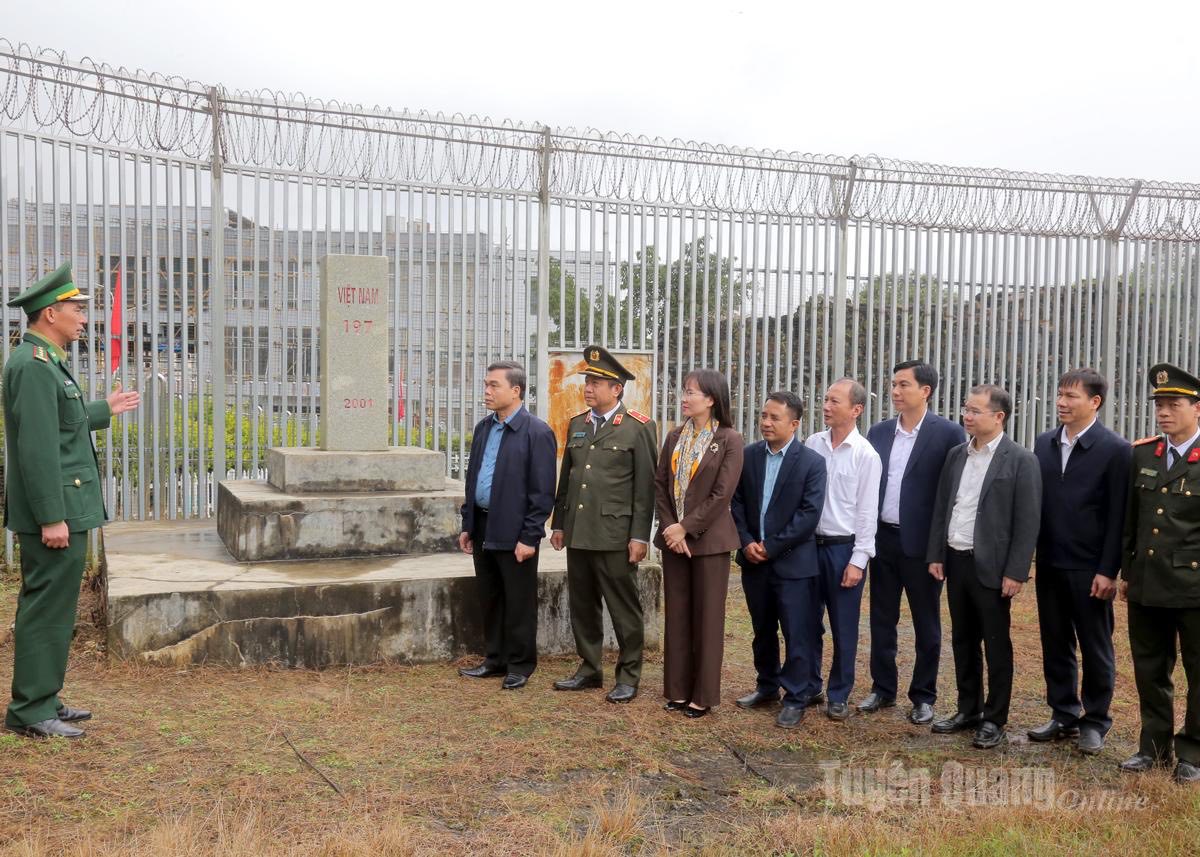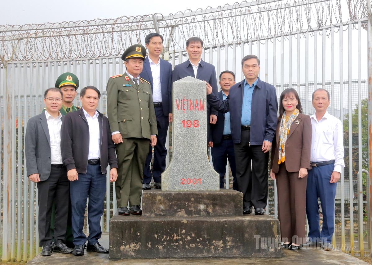 Các đồng chí lãnh đạo tỉnh thăm cộc mốc 198, thôn Tả Mù Cán, xã Xín Mần.