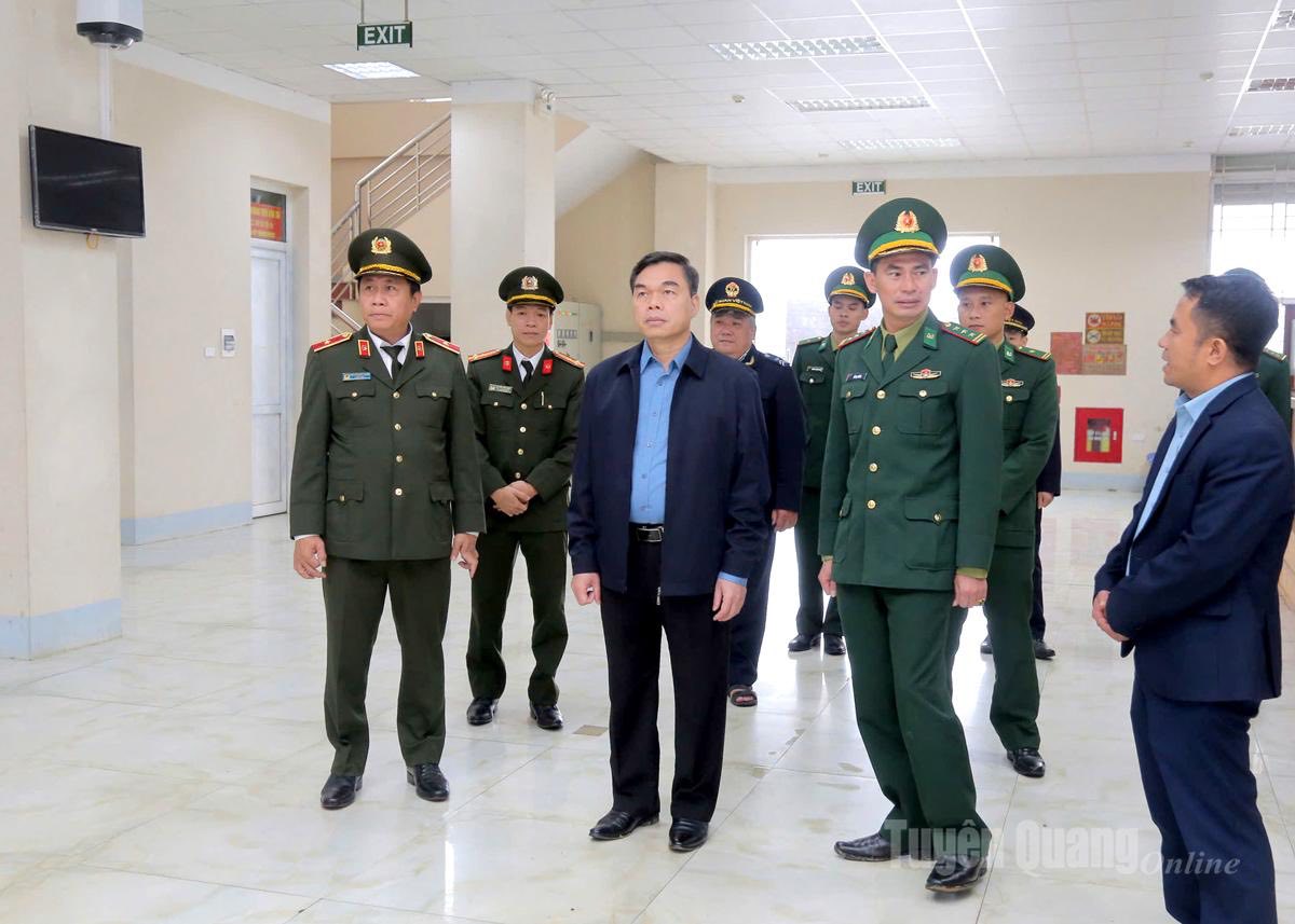 Phó Bí thư Tỉnh ủy, Chủ tịch Ủy ban MTTQ Việt Nam tỉnh Ma Thế Hồng và Giám đốc Công an tỉnh Nguyễn Đức Thuận thăm cơ sở vật chất tại Trạm kiểm soát liên ngành cửa khẩu Xín Mần.